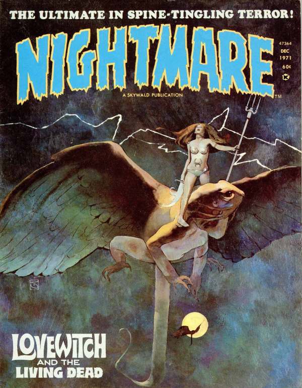 The following cover by Jones is from the Skywald horror magazine, Nightmare, volume 1, number 6 (December 1971):