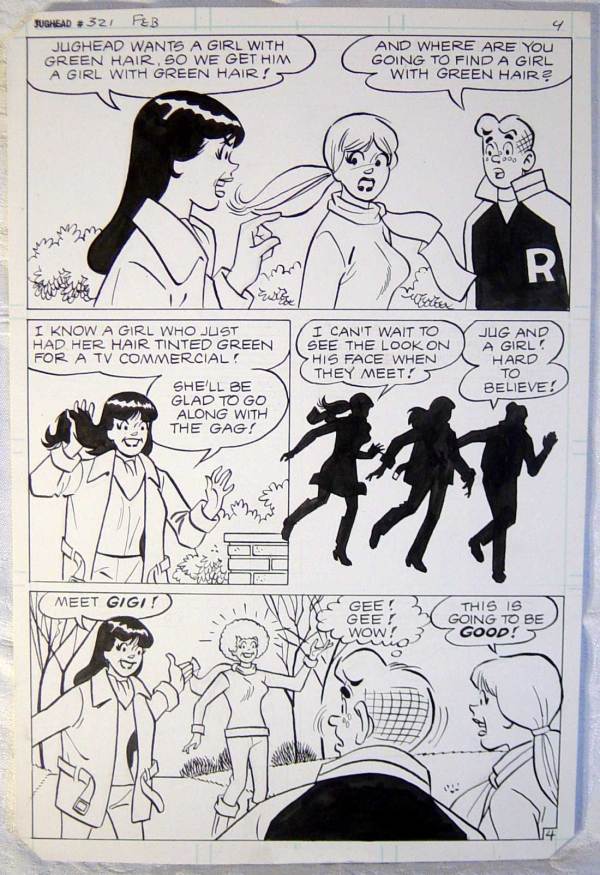 I bought the story on ebay a long time ago. It was in a lot with a complete Betty and Veronica story by Stan Goldberg. As I recall, the cost of the two stories together was less than US$100, shipping included. Maybe I’ll post the Goldberg another time… though I must admit, I’m not really a Goldberg fan…