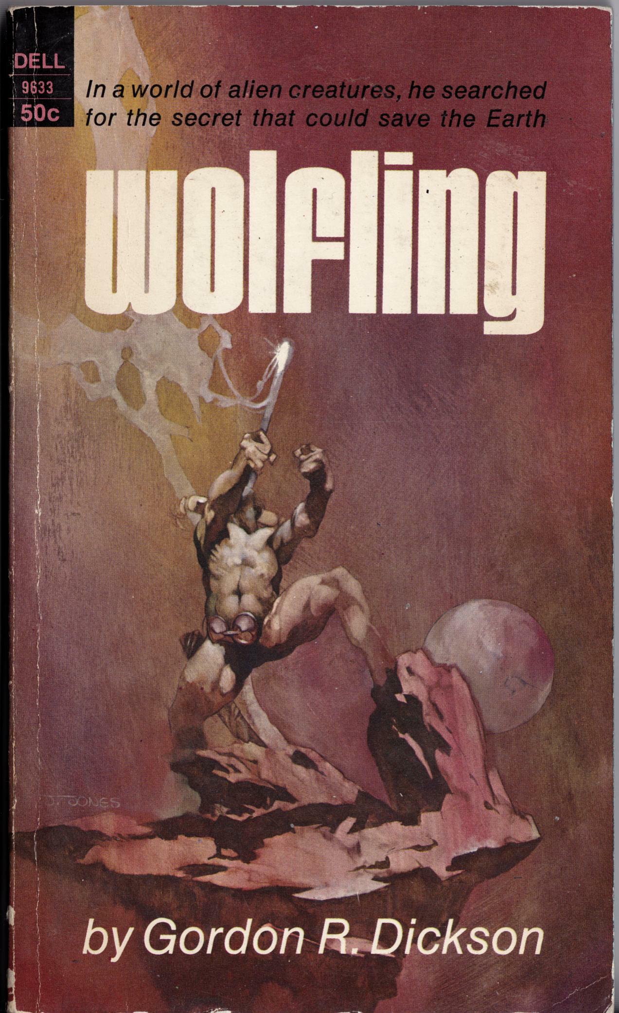 This past weekend, I finally located (and purchased) a copy of Gordon R. Dickson’s Wolfling, with cover by Jeffrey Jones, so now, at last, I can post this comparison of two very similar images by Jones executed in two different mediums, oil vs. ink: