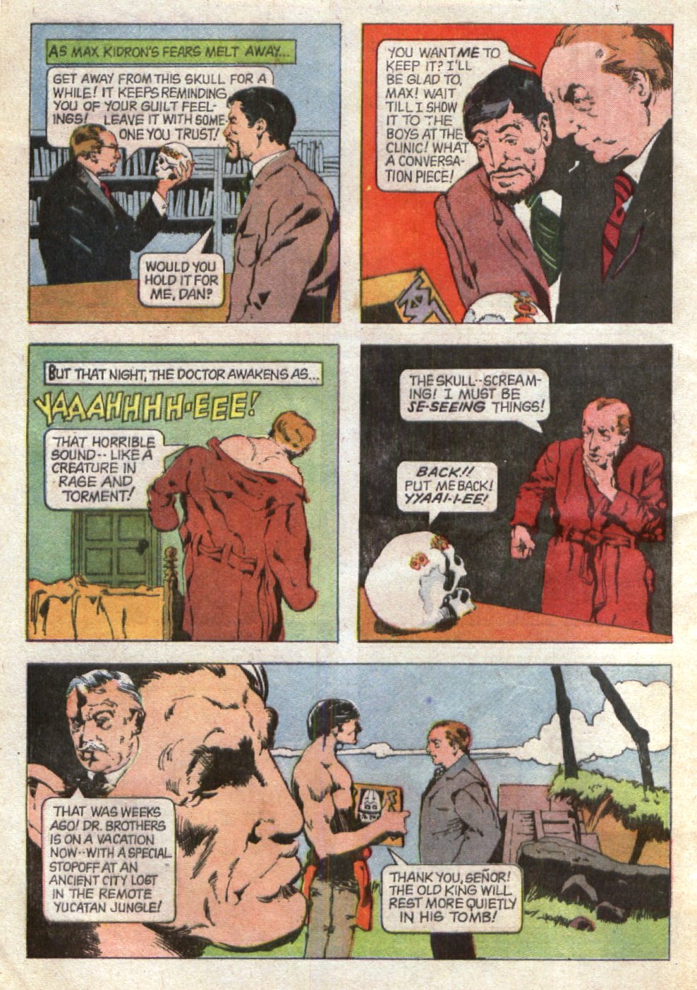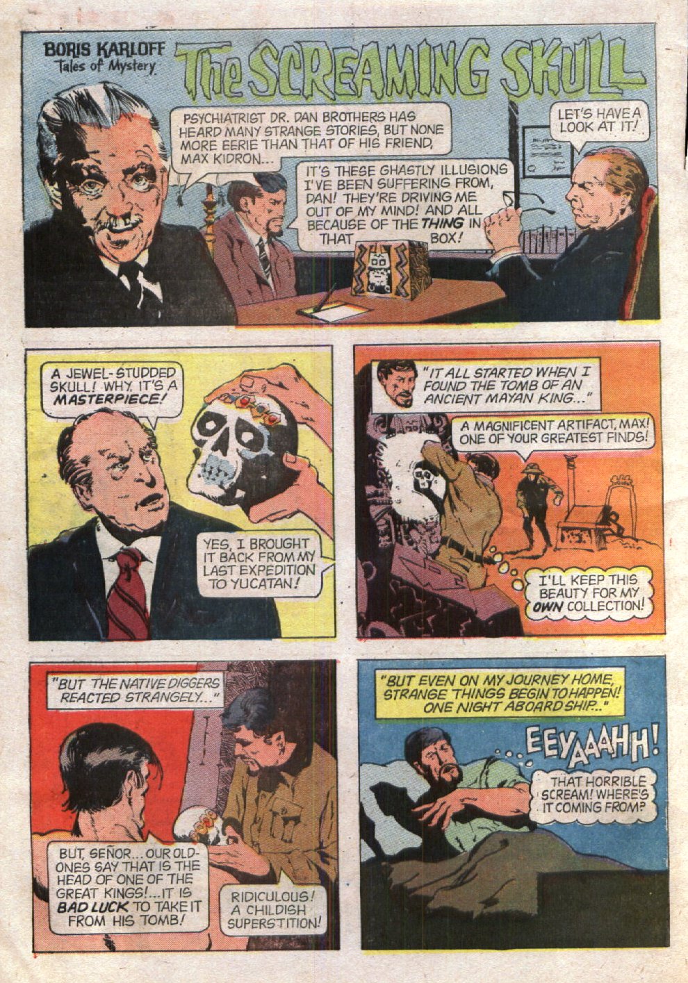 From Boris Karloff: Tales of Mystery #21, here — more for the sake of historical interest than for its intrinsic merit, which is slight — is “The Screaming Skull,” with art by Jeffrey Jones: