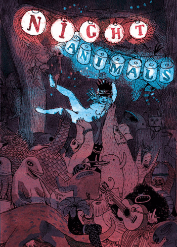 Lush colors, wild imagination, and rich human themes collide in the Top Shelf debut of Belgian cartoonist Brecht Evens (The Wrong Place). Night Animals is a deluxe full-color comic book containing two wordless stories, each a feast for the mind as well as the eyes. Join an innocent young girl as she becomes a woman and learns where the wild things are, then follow a rabbit-suited man as his blind date becomes the epic journey of a lifetime. These gorgeous, bewitching tales are not to be missed! — A super-deluxe 48-Page FULL-COLOR Comic Book, 6.5″ x 9.5″