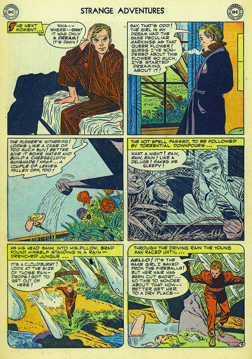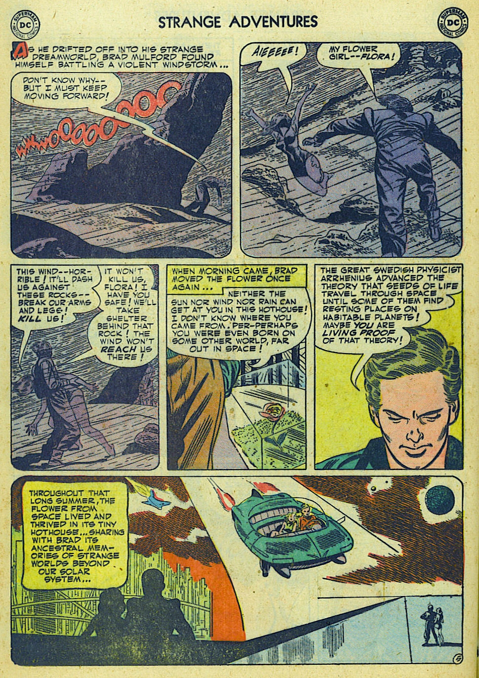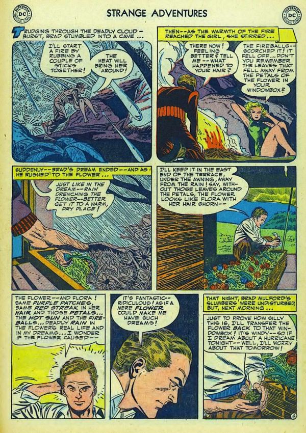 I first read this story when I was 9 years old in 1969. I couldn’t have owned the book which reprinted it or else I would have remembered more, but it must’ve been DC Special (1968 series) #3 (after I found your above posting of this story I found it on the GCD site). The real reason it stuck with me was for ONE SINGLE PANEL in it: the one with the lead character (Brad) dreaming that he was running though a storm of giant raindrops, which really etched itself into my young imagination.