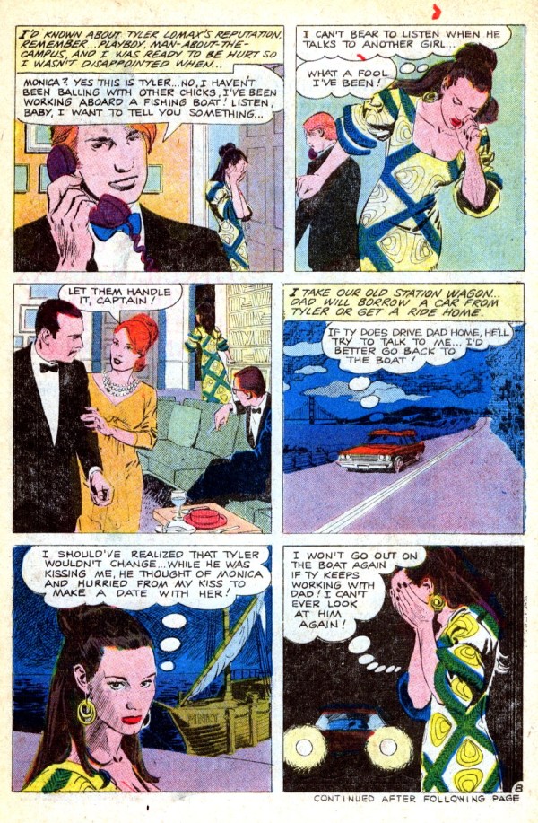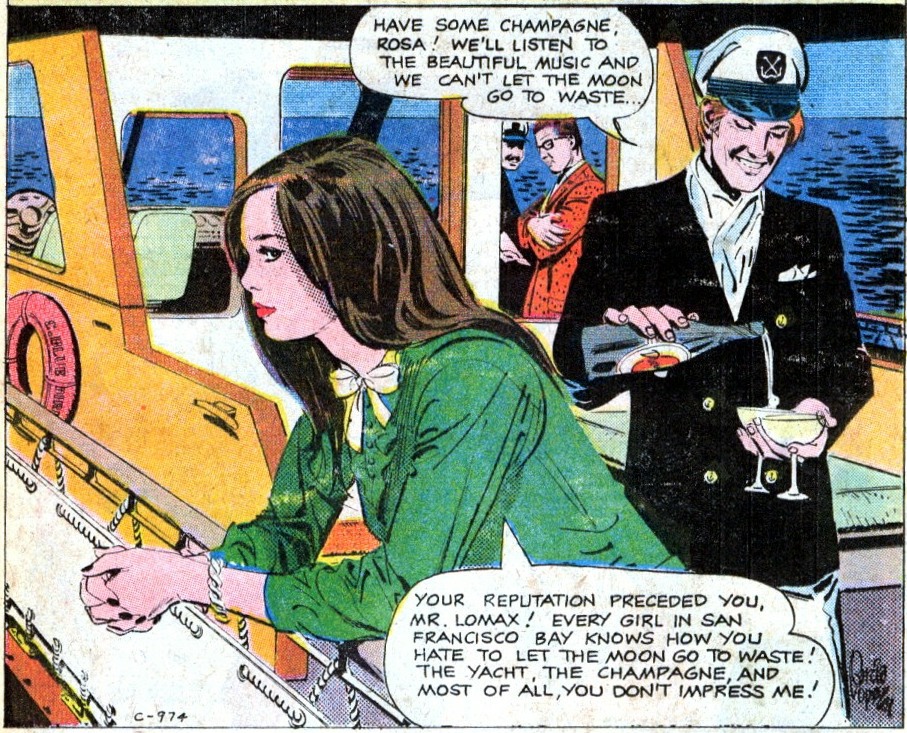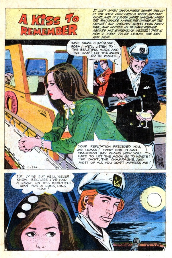 I’m not a big fan of comics photorealism, but when I accidentally come across accomplished but uncredited artwork like the above in an otherwise lacklustre Charlton romance comic, I am compelled to find out who the artist is, though in this instance, it was easy: I recognized the signature!