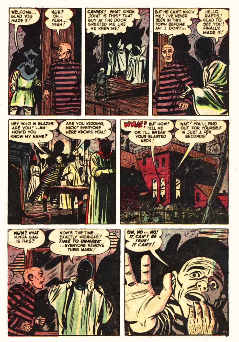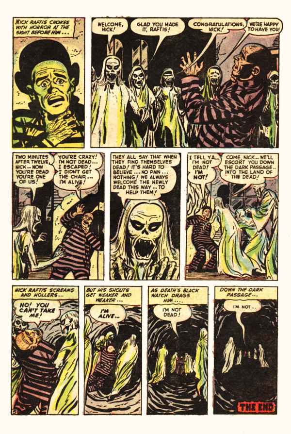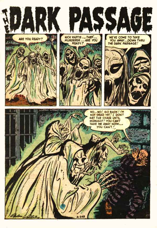 From Adventures into Terror #10 (June 1952), here’s “The Dark Passage,” with art signed by Ogden Whiteny, who later teamed up with Richard E. Hughes (writing under the pen-name “Shane O’Shea”) to create Alan Moore’s favourite “superhero,” Herbie Popnecker: