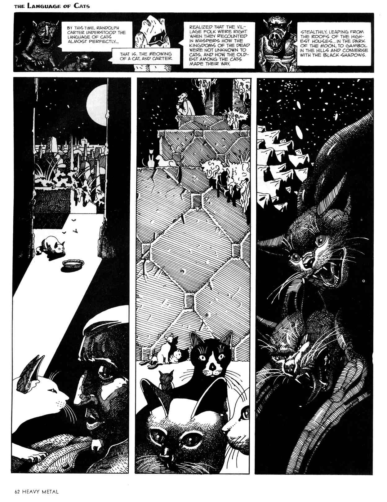 From Heavy Metal, volume III, number 6, “Special Lovecraft Issue” (October 1979), here’s “The Language of Cats,” with beautiful black-and-white art by French illustrator, painter, and cartoonist, Nicole Claveloux: