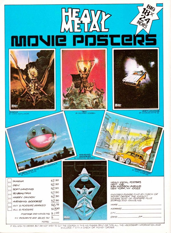 Also, I do believe the uncensored Corben poster was sold, along with others, in the pages of Heavy Metal. I’ll post the advertisement. I don’t think the uncensored poster was used to promote the film in theatre lobbies and the like, however.
