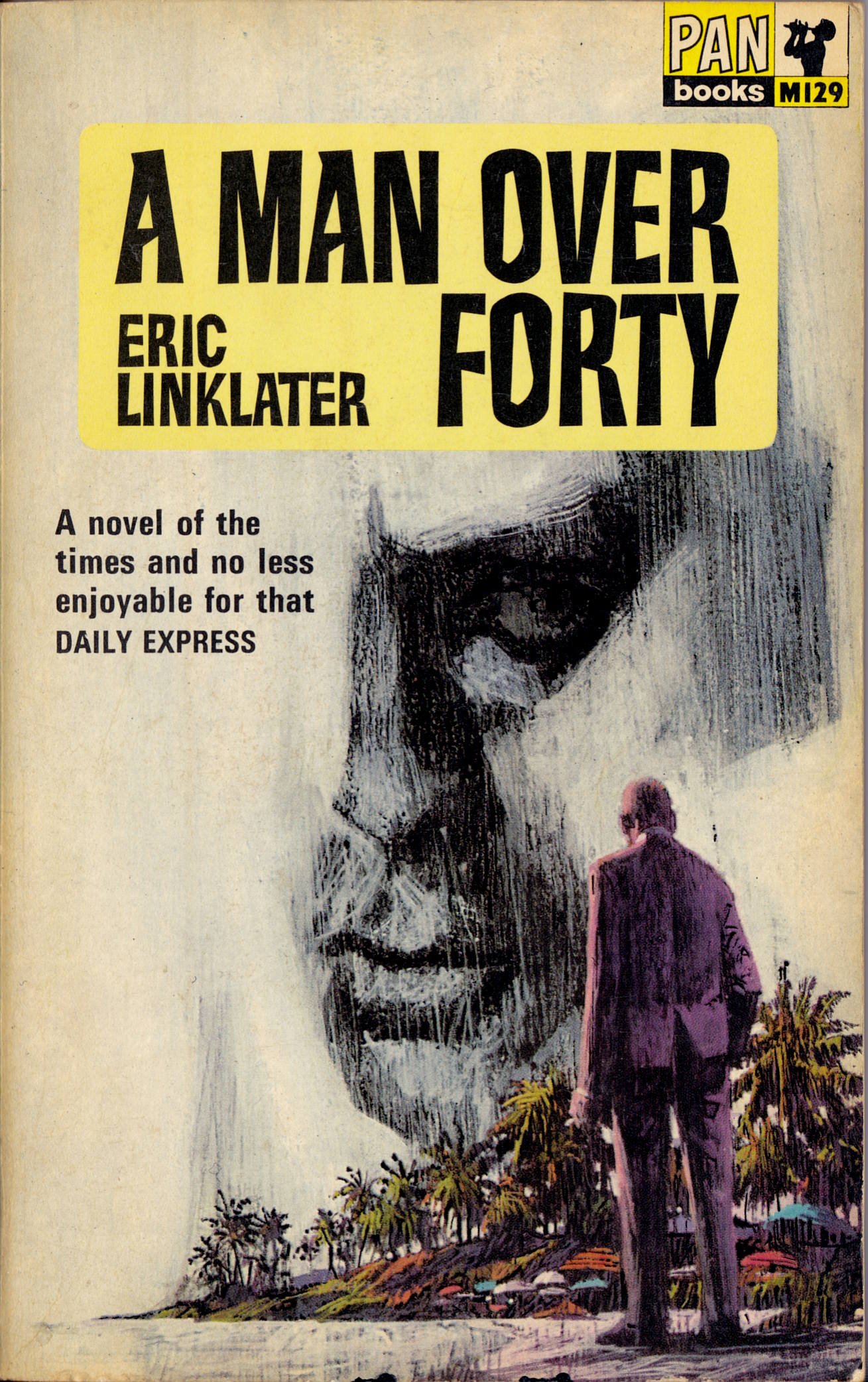 Although uncredited, the cover of The Ugly American is signed by prolific pulp illustrator Barye Phillips. The cover of A Man over Forty, however, is both uncredited and unsigned. Anyone recognize the artist from the style?