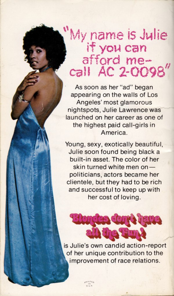 Does it make any sense to you that the woman on the front of Blondes Don’t Have All the Fun is wearing sheer pantyhose? Because it makes no sense to me… though I am certainly familiar with the theory that being not quite naked is sexier than being totally naked… I just don’t see that it makes much difference here, except that waistband is an unattractive distraction…
