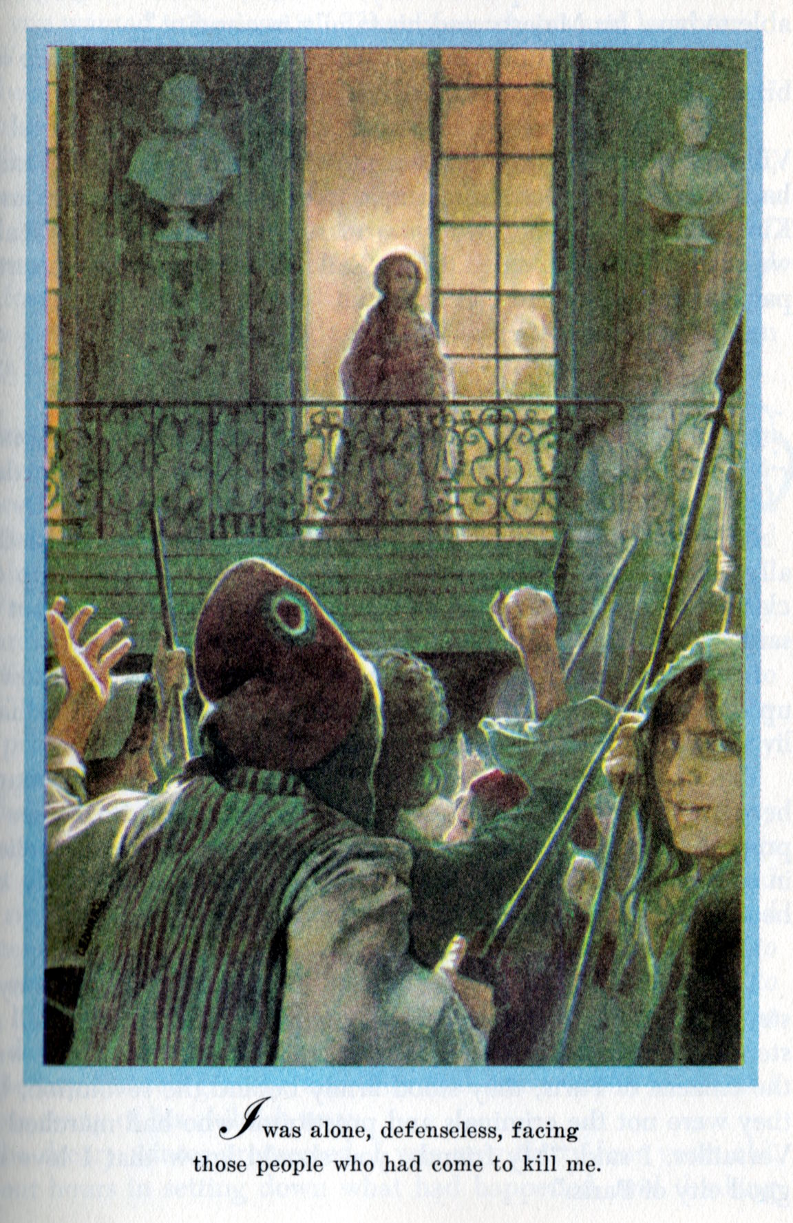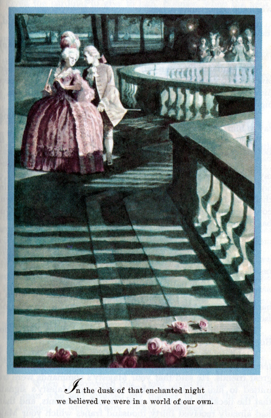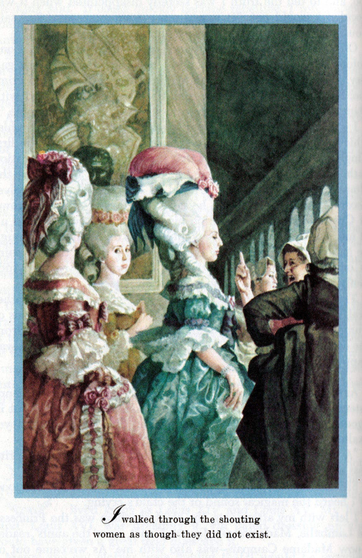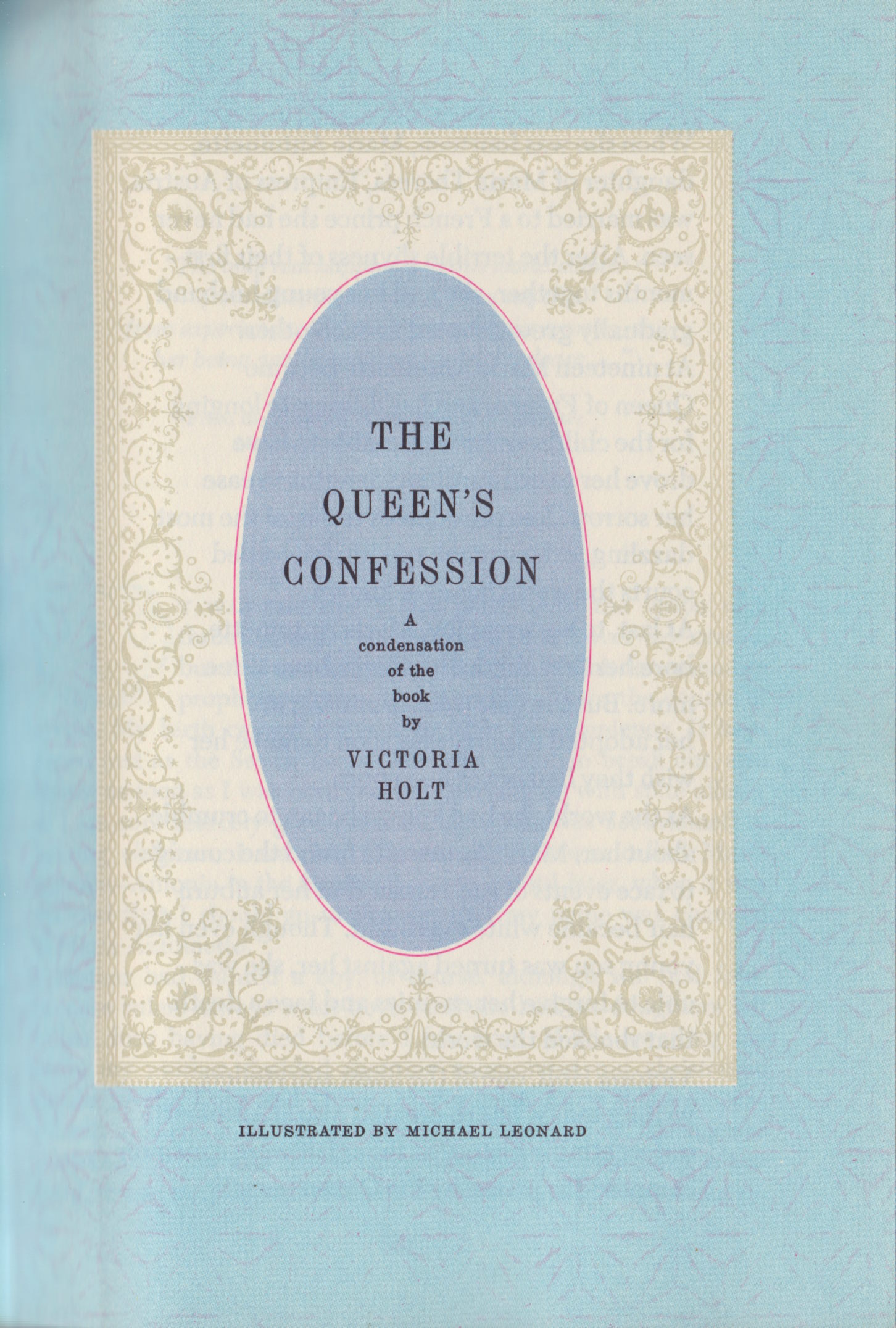 In recent months, I’ve begun looking through volumes of Reader’s Digest Condensed Books at church and garage sales in the hope of finding some long-forgotten images worthy of online preservation and contemplation here at RCN, and today, I am delighted to report that I have finally uncovered a series of illustrations that I think stands head and shoulders above the usual good-but-not-great, able-but-uninspired Reader’s Digest fare. The illustrations I am referring to were created by Michael Leonard for The Queen’s Confession, a “condensation” of English novelist Victoria Holt’s first-person narrative of the rise and fall of Marie Antoinette, and the complete package, story and pictures together, was first printed in Reader’s Digest Condensed Books, Vol. III, 1968, Summer Selections. Here are my scans: