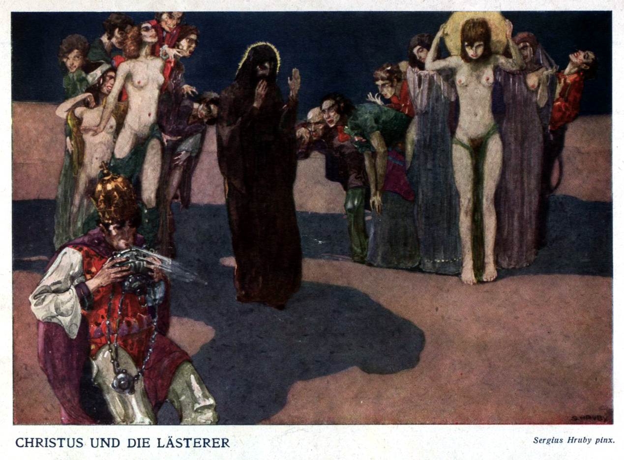 From the Austrian humour/men’s magazine, Die Muskete, here’s one illustration from 1932 along with six from 1933, all by Sergius Hruby (1869 – 1943), selected, sized, cropped, processed, and posted, for better or worse, by yours truly from scans in the online archive of the Austrian National Library: