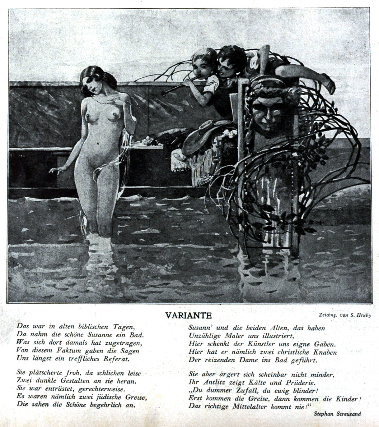 According to the RCN webstats, the various posts here of illustrations by Sergius Hruby have been sorta-kinda popular, so in the interest of sucking up to the faceless semi-horde, here’s yet another (and probably the last) more or less random display of Hruby, selected, processed, and posted by me from the Austrian humour/men’s magazine, Die Muskete, via the online archive of the Austrian National Library: