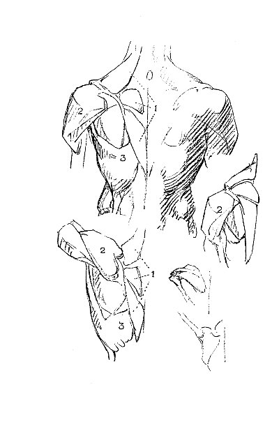 - Buy a good anatomy book written for artists and USE IT. My top two recommendations from among the big “artistic anatomy” books that are currently in print and easily obtainable are Classic Human Anatomy: The Artist’s Guide to Form, Function, and Movement by Valerie L. Winslow and Atlas of Human Anatomy for the Artist by Stephen Rogers Peck. I also really like Anatomy: A Complete Guide for Artists by Joseph Sheppard, whose old-master influenced drawings are not only admirably clear but also aesthetically pleasing and inspiring in a way that drawings in modern anatomy books seldom are. And last but definitely not least, I like The Human Figure: An Anatomy for Artists by David K. Rubins, which is short, inexpensive, and has some of the clearest drawings of musculature of any artistic anatomy book I’ve seen. In fact, I like Rubins’s book so much that I cut the spine off of my copy and replaced it with a cerlox or “comb” binding, using a heavy-duty machine that I purchased for cheap at the local Habitat for Humanity Re-Store, so that I could lay book flat on my work surface for easy reference. But YMMV, as the kids used to say.
