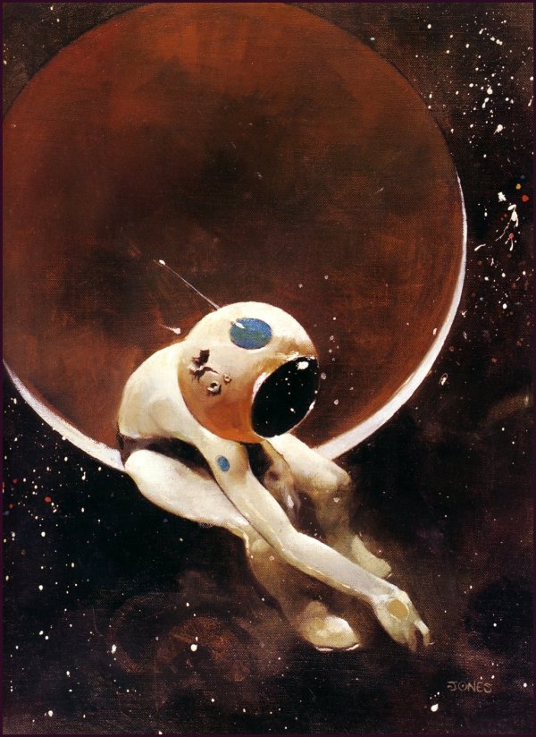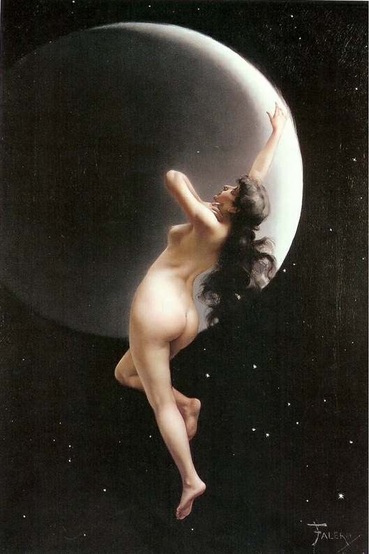 I saw the painting Crescent Moon (a.k.a., Moon Nymph) by nineteenth-century Spanish painter and astronomy enthusiast Luis Ricardo Falero for the first time about an hour ago, when I read an article about Falero’s work that Ron Miller wrote for io9 and posted earlier today. And as is my wont, I immediately noticed a possible connection between one of Falero’s paintings and an SF illustration by one of my favourite artists, Jeffrey Jones, the promotion of whose work has been a frequent theme of my posts here at RCN (although not so much lately as it has been in the past):