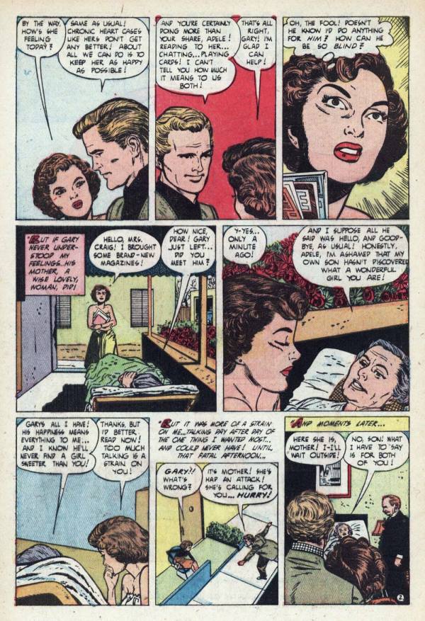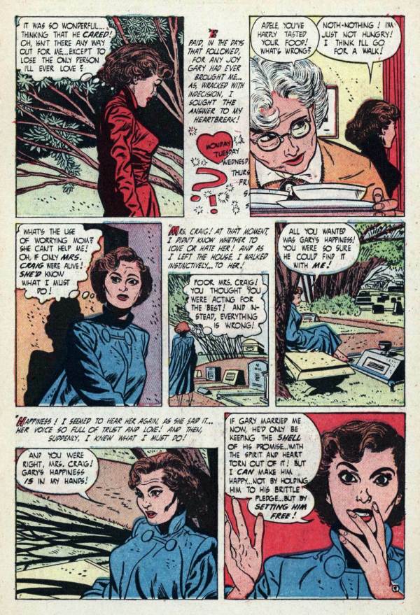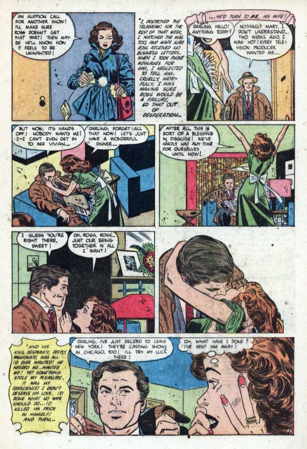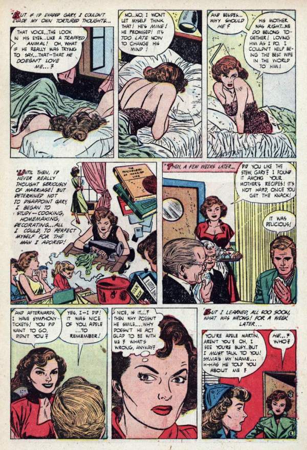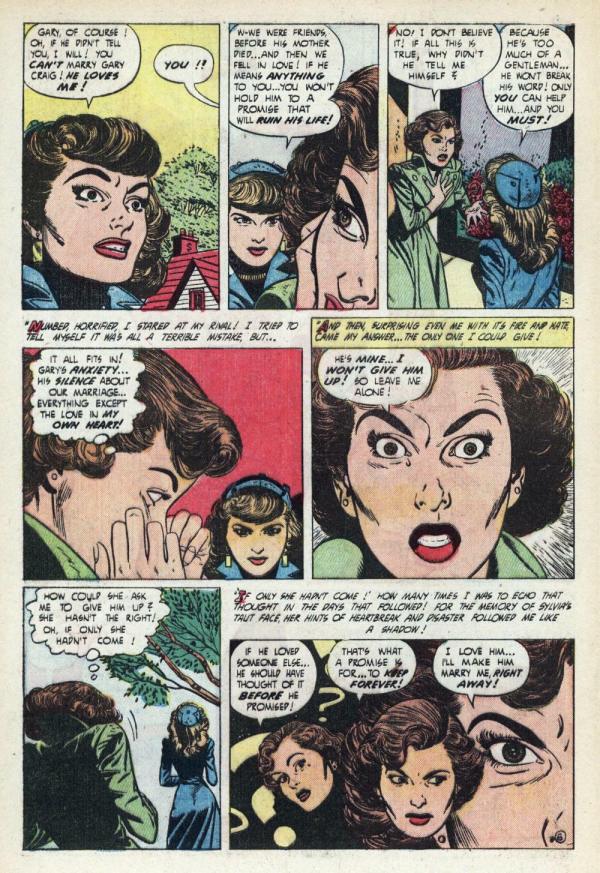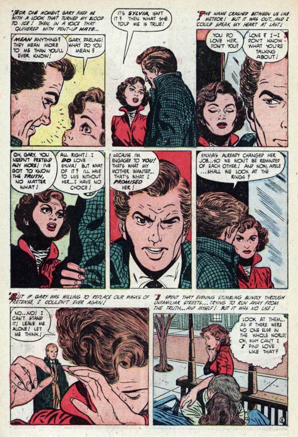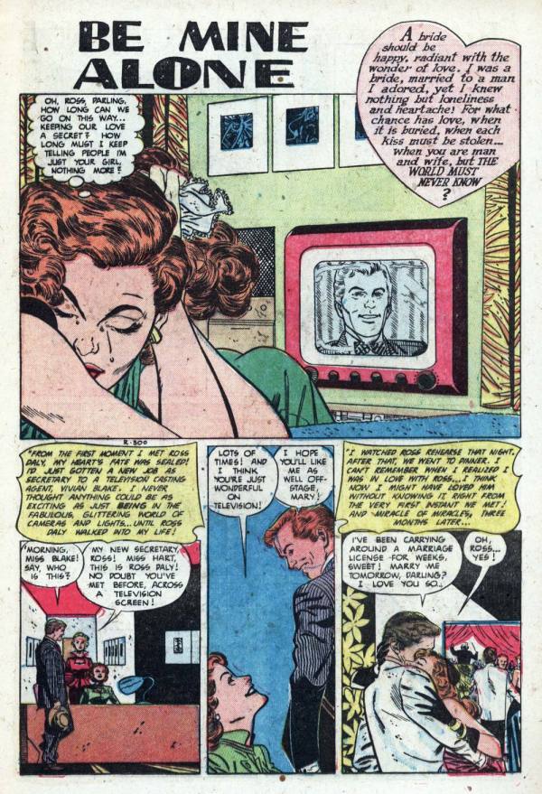 From New Romances #10 (March 1952), here’s “Be Mine Alone,” pencilled by Alex Toth and inked by Mike Peppe from an uncredited script: