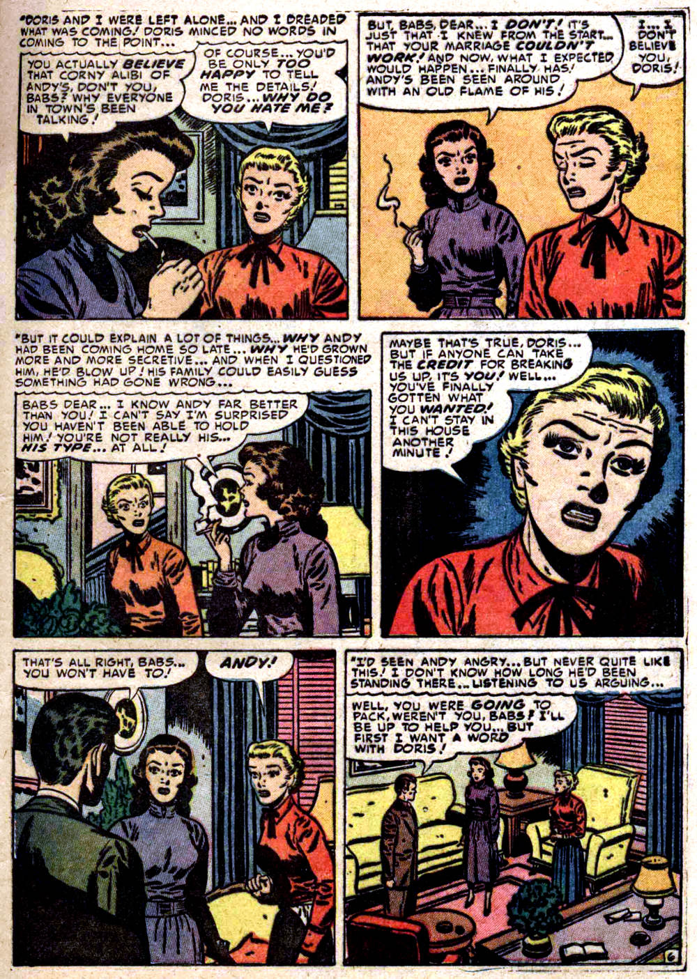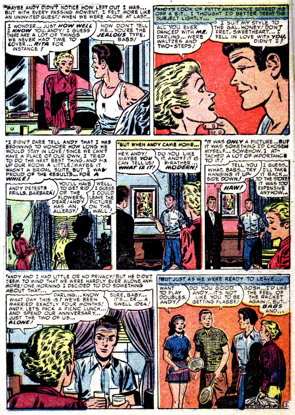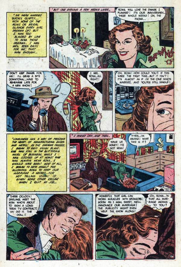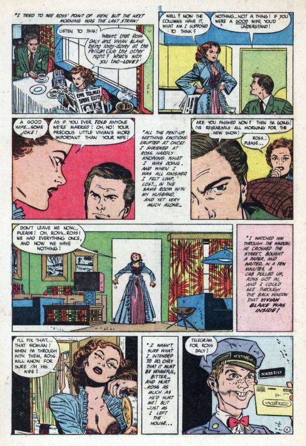 From New Romances #10 (March 1952), here’s “Be Mine Alone,” pencilled by Alex Toth and inked by Mike Peppe from an uncredited script: