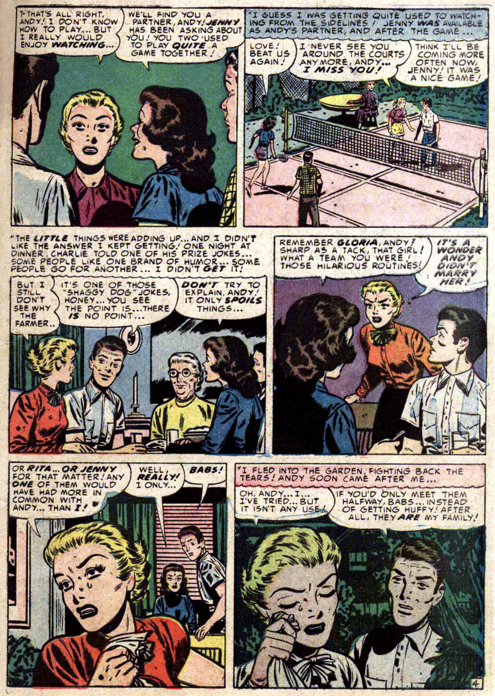From New Romances #11 (May 1952), here’s “My Empty Promise,” with art signed — and so, presumably, both pencilled and inked — by the great Alex Toth and script by the great unknown: