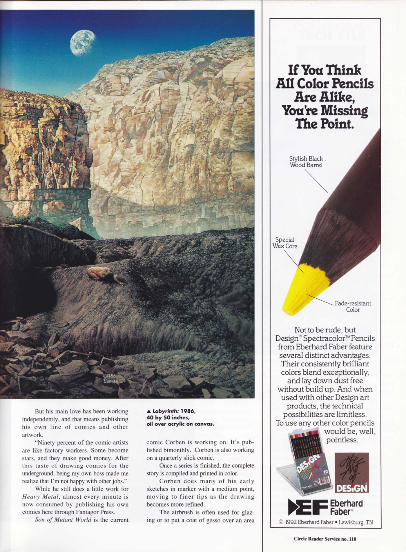 I used to draw — I wanted to be a cartoonist — but after a while the act began to feel like having your nervous system unspooled through your fingernails, boiled like spaghetti, and then fed to hyenas. I found the results were too wound up with my emotions, what I ate that day, how much sleep I had, which way the wind was blowing, etc. I think I draw pretty well, actually, but I still feel I have no conscious, consistent control over what my hands are doing when I’m drawing, which is a problem when you have to draw the same characters over and over, in the same style, for hundreds of pages. I think my rendering (particularly brush and pen work: line weights, textures, modelling, etc.) reached a professional level, but ultimately I never got past a sort of stiff uncomfortableness that was too discouraging and crippling for me to ignore. My cartooning just didn’t have the sort of “handwriting” personality that the best cartoonists display. And the stories I wanted to tell — and the affect I wanted them to have — were just too complex for me to draw with such limited skills.
