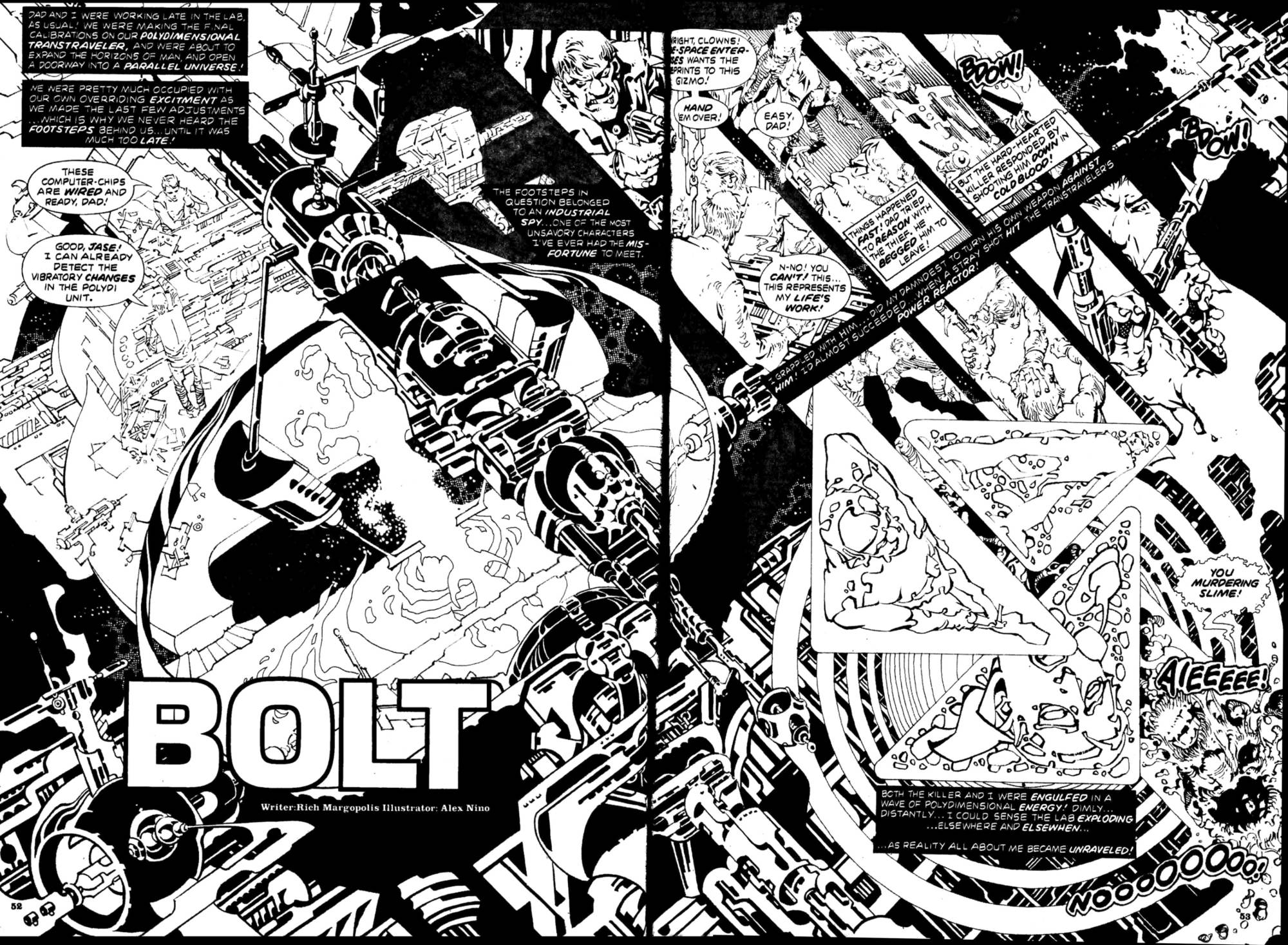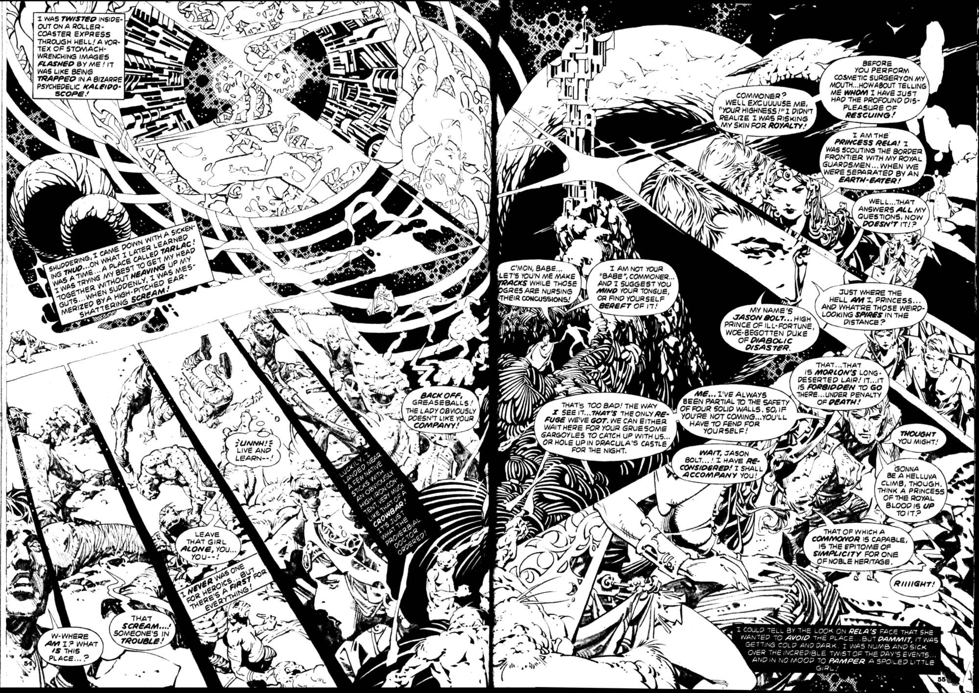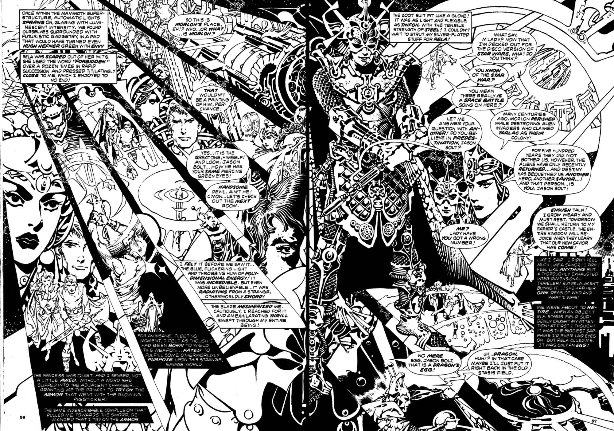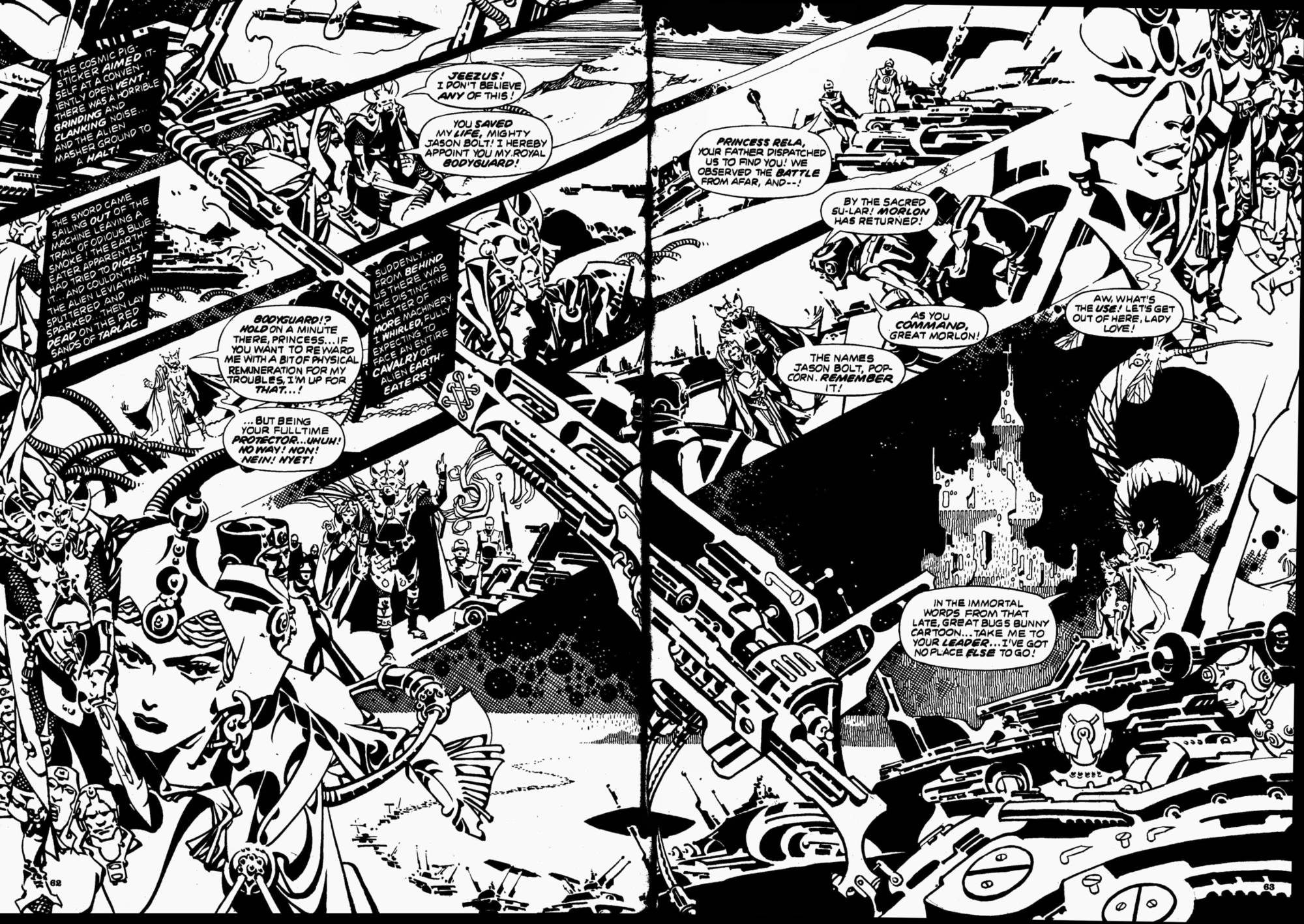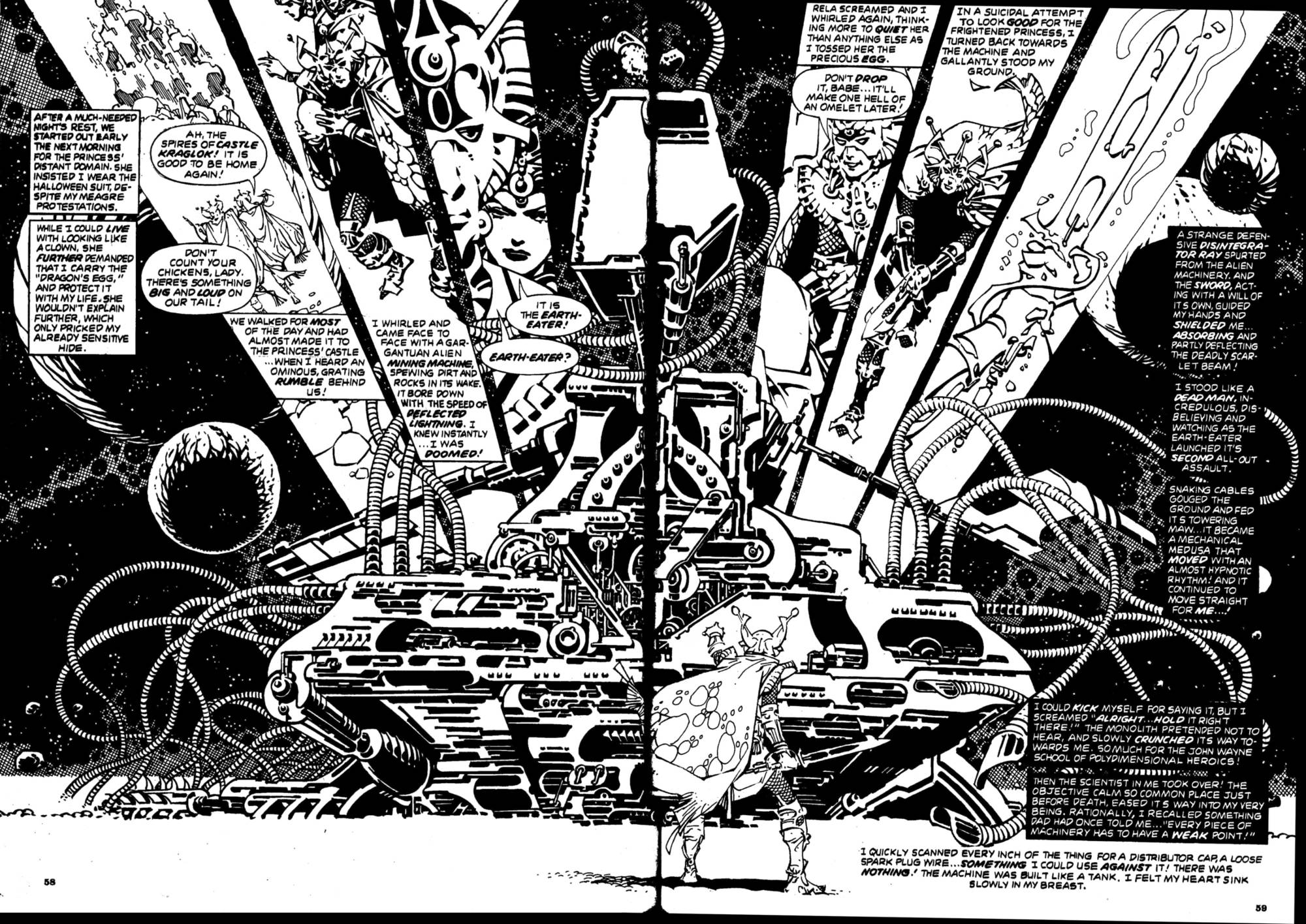 From Captain Victory and the Galactic Rangers Special #1 (October 1983), here’s the astonishing two-page “double splash” collage by Jack Kirby and company that brought the story — “COMPLETE IN THIS ISSUE!!!” — to a crashing conclusion:
