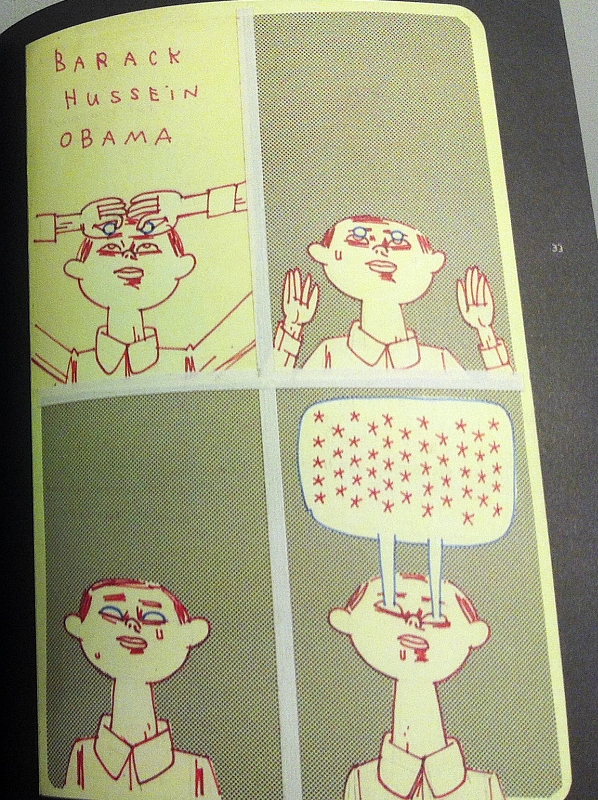 A hardcover collection of Weissman’s “Barack Hussein Obama” was published by Fantagraphics in 2012, and I thought it was one of the best “graphic novels” of the year. If the “real” Barack Hussein Obama had lost the election in November of last year, the strip probably would have ended then and there. But Obama won, and Weissman has been posting new instalments ever since, with a view, I suppose, to a second collection — or perhaps simply a complete collection — at some point in the future.