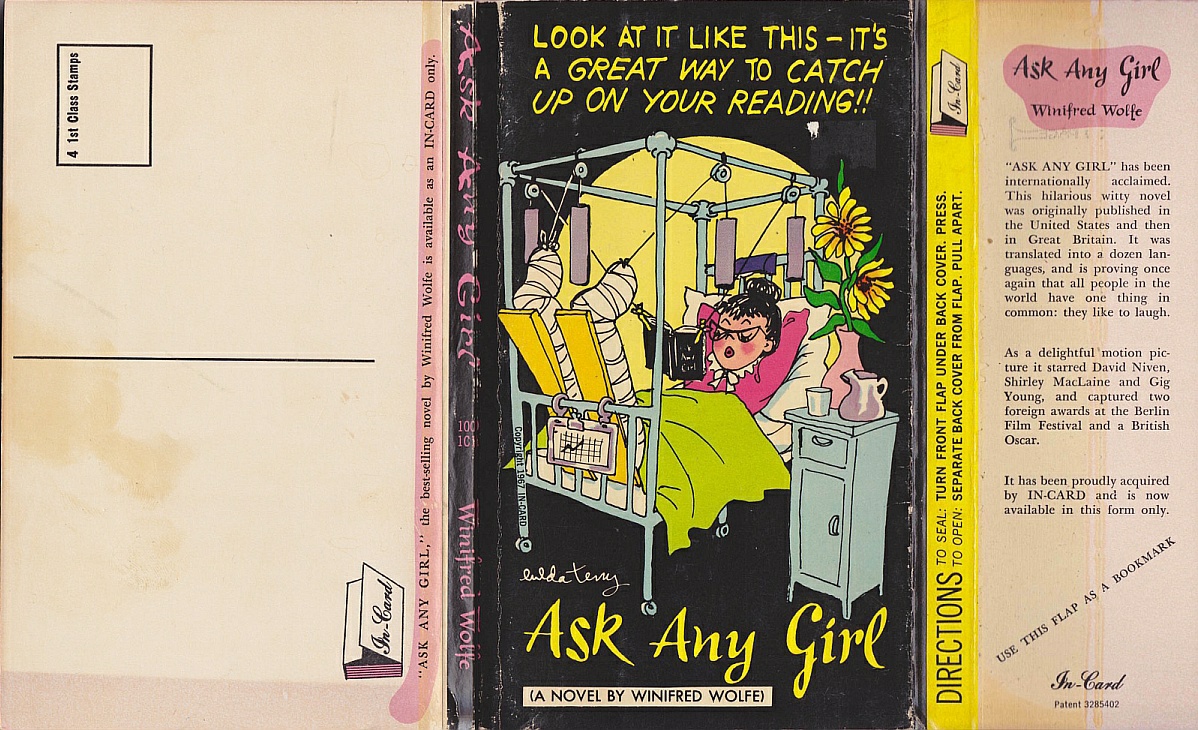 Light and Fantastic by Winifred Wolfe, with cover art by Hilda Terry (author of the underrated comic strip, Teena — see here, here, and here), is the second in-card novel that I’ve posted here at RCN. The first was Ask Any Girl by the same author, with cover art by the same artist. In that case, I posted four different covers; this time, I have five: