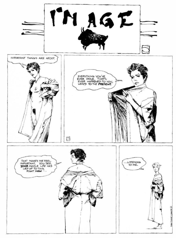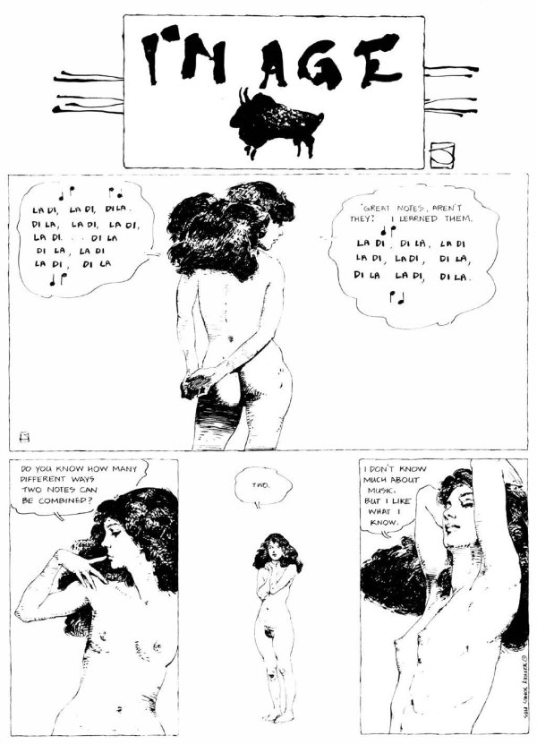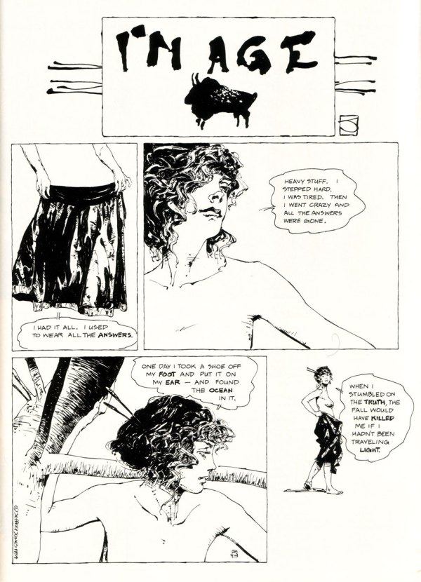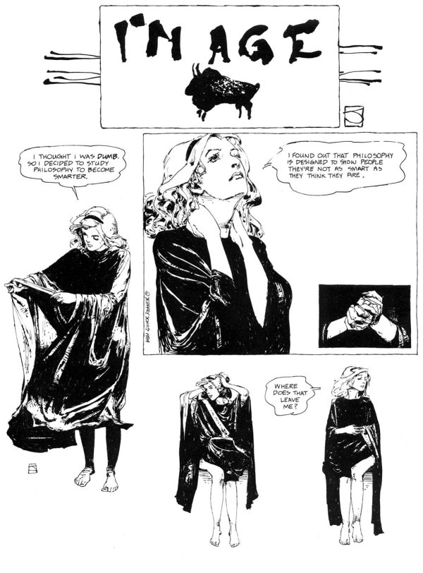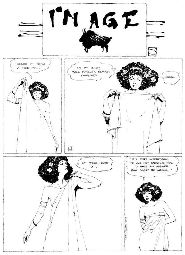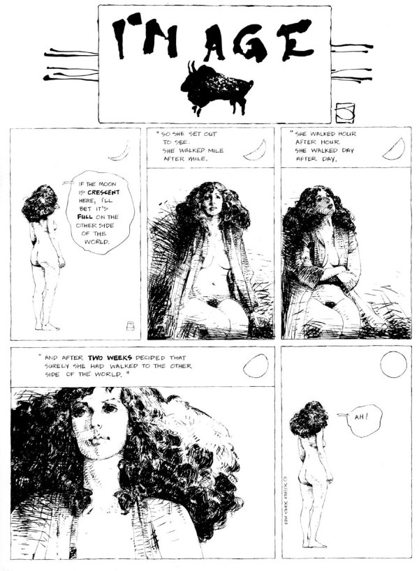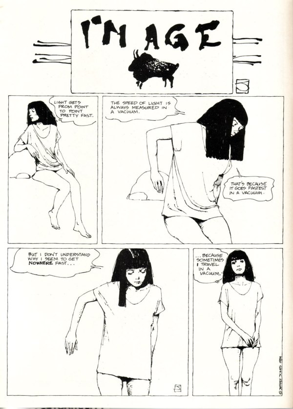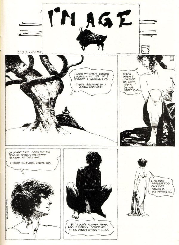 Late to the party again… but life (and laziness!) gets in the way… anyway… last year, near the end of the summer, Donald M. Grant published the first-ever all-in-one collection of two comic strips by Jeffrey Jones: Idyl, which originally ran in National Lampoon in the 1970s, and I’m Age, which ran in Heavy Metal in the early 1980s.