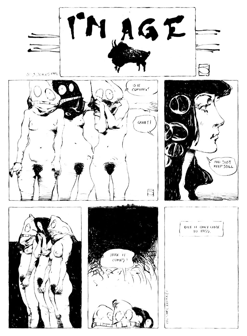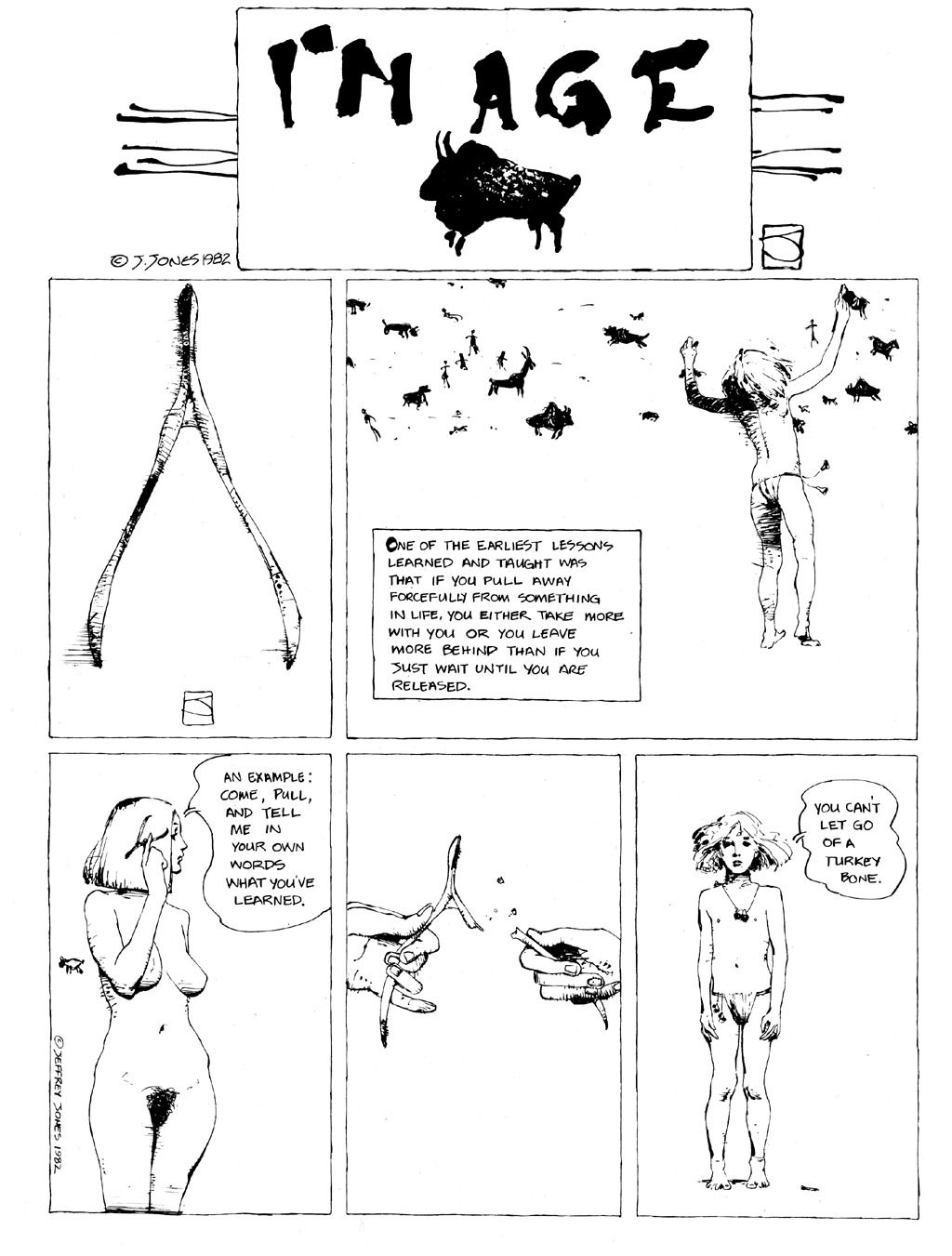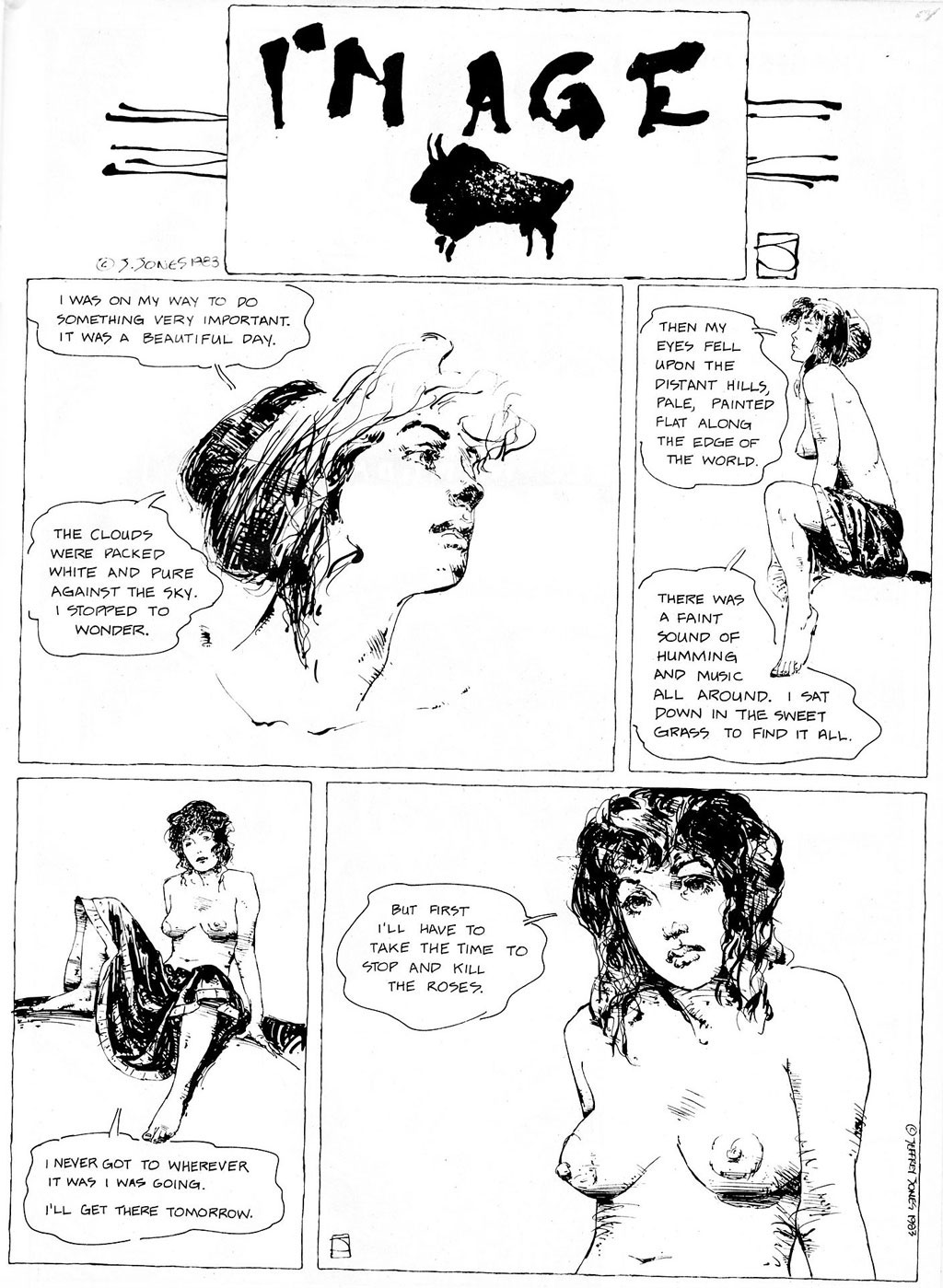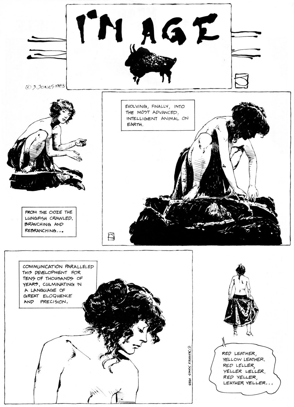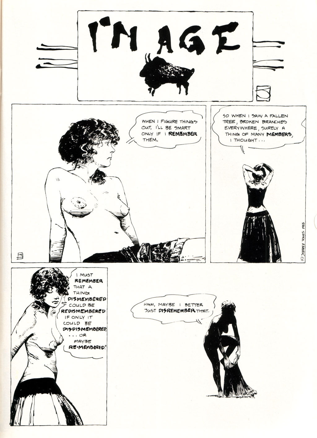 Late to the party again… but life (and laziness!) gets in the way… anyway… last year, near the end of the summer, Donald M. Grant published the first-ever all-in-one collection of two comic strips by Jeffrey Jones: Idyl, which originally ran in National Lampoon in the 1970s, and I’m Age, which ran in Heavy Metal in the early 1980s.