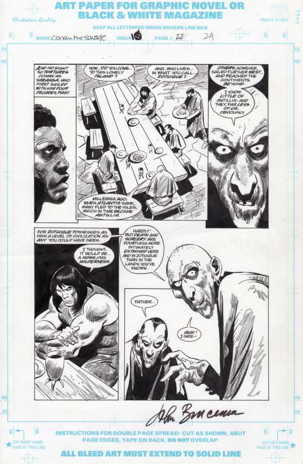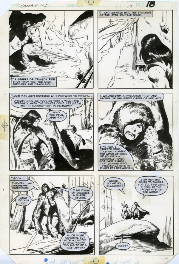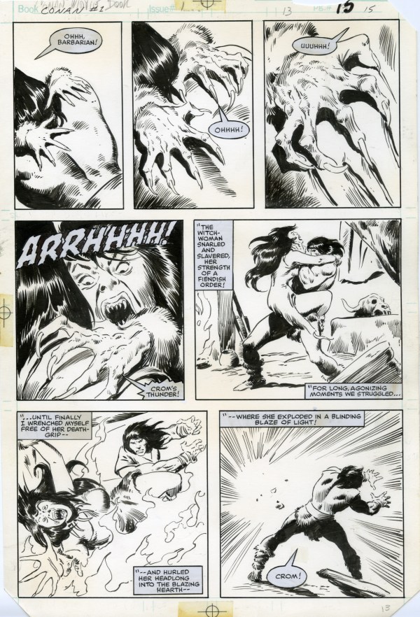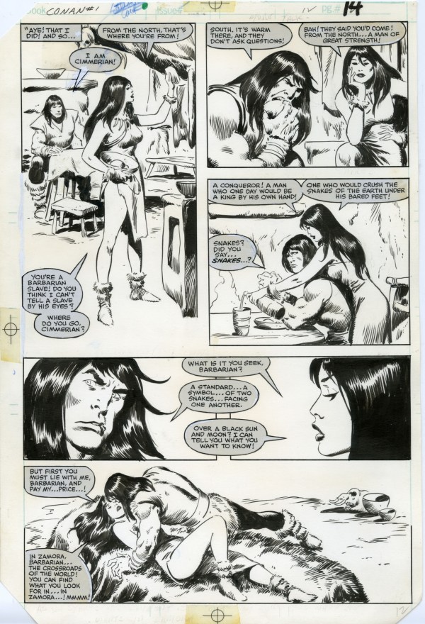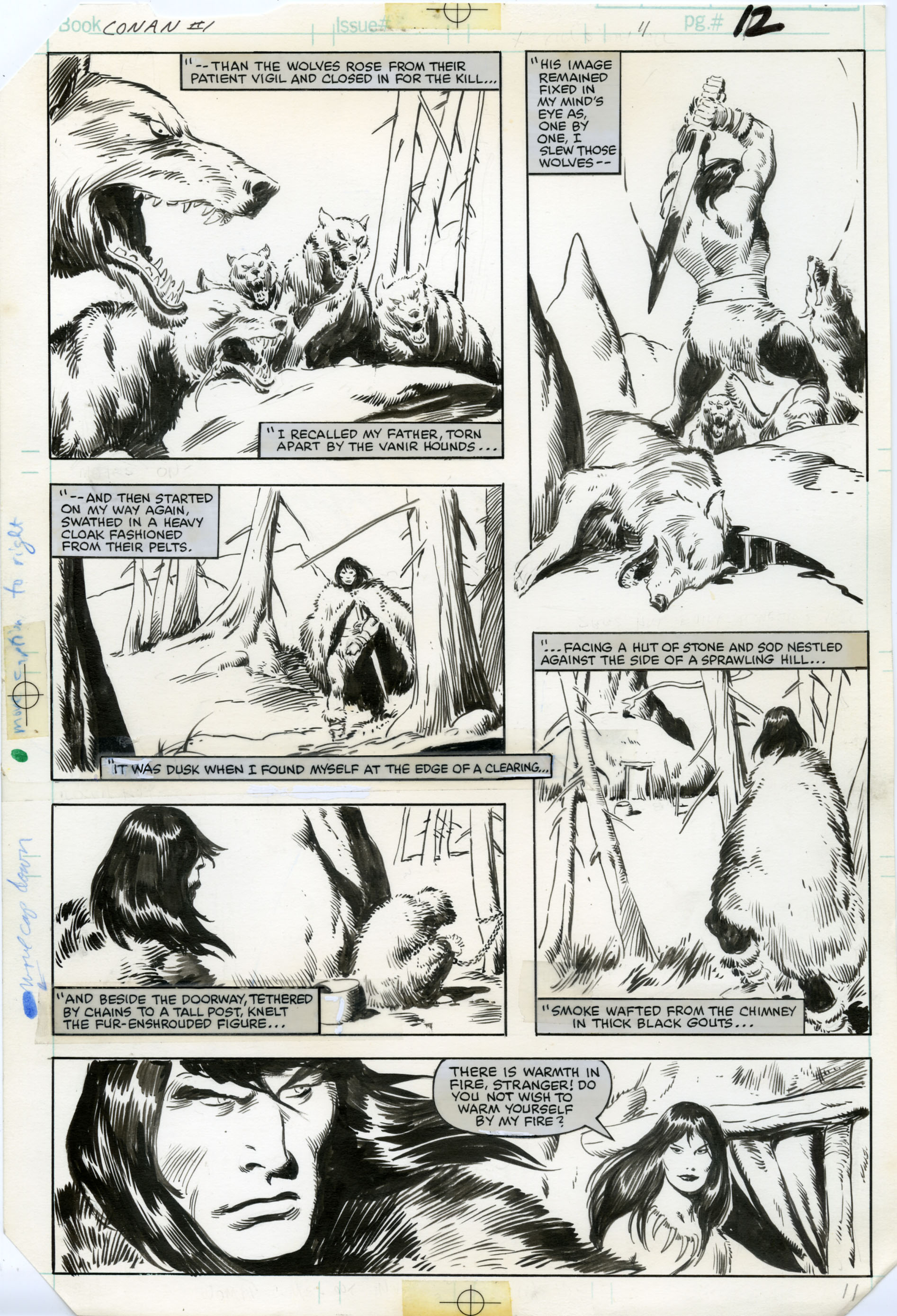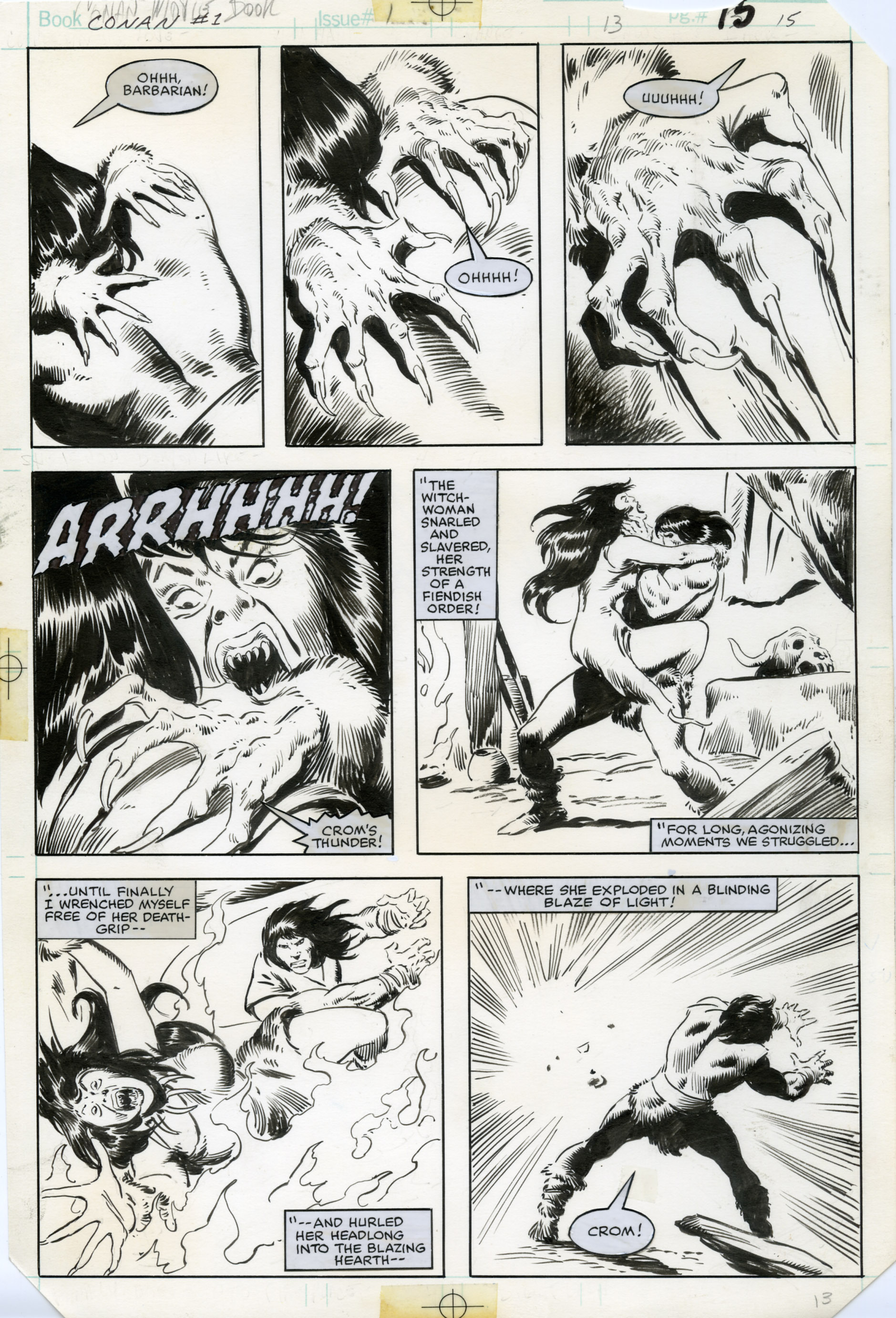 In our small collection of art by John Buscema, my wife and I have a couple of signed pages of pencilled and partially inked figure drawings on full sheets of sketchbook paper, ten signed sketches clipped by Buscema himself from larger sheets, an unusual signed graphite sketch on a sheet on copier paper, and a Conan page that the artist pencilled, inked, and shaded in what appears to be black grease pencil (a.k.a., china marker). So, obviously, somebody in our house is a bit of a Buscema fan!