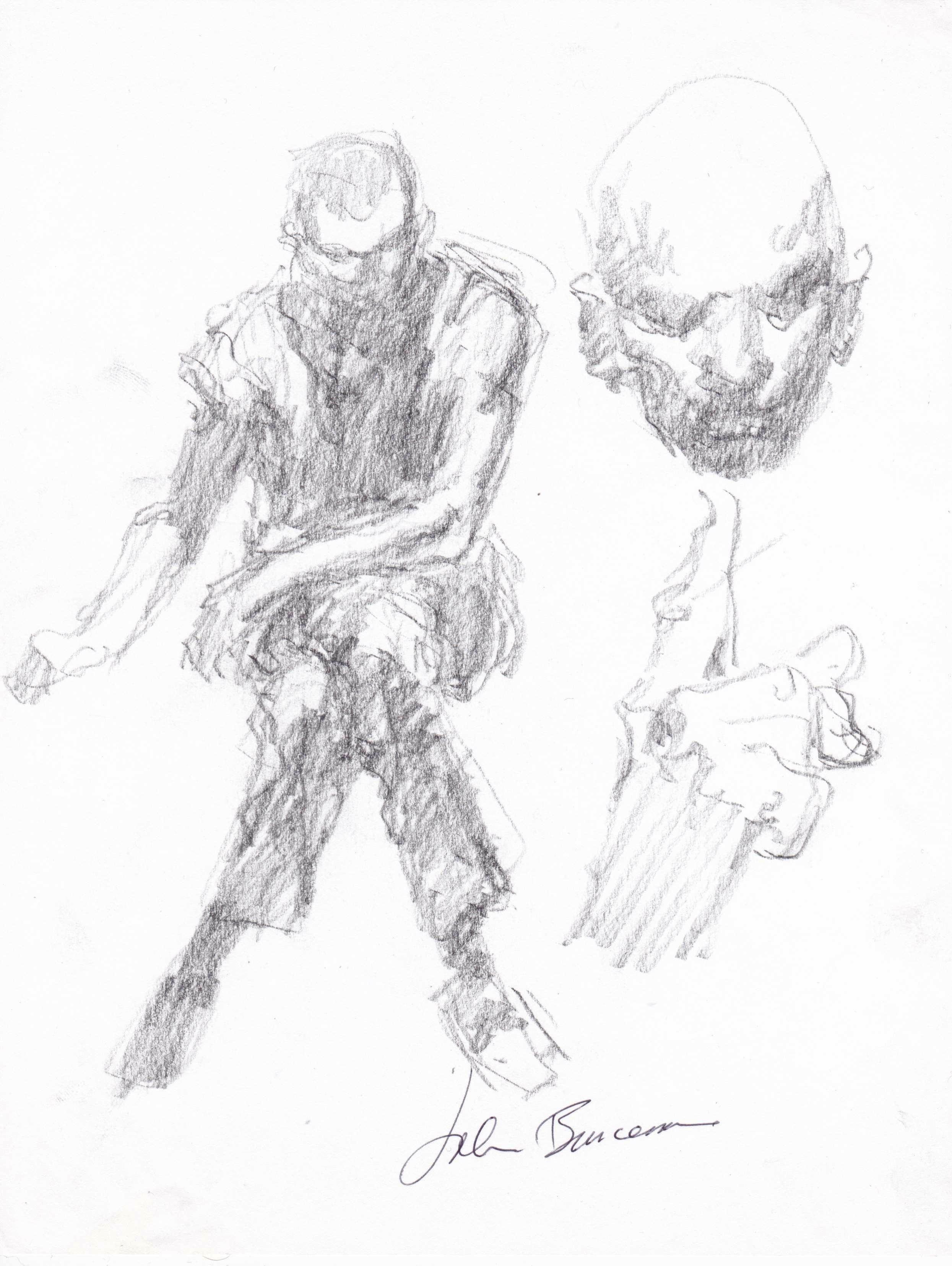 If you’re interested in Buscema’s sketches, three books have been published that, with varying degrees of success and failure, try to cover the territory: 1) The Art of John Buscema (1978), 2) John Buscema Sketchbook (Vanguard, 2001), and 3) John Buscema: A Life in Sketches (Pearl Press, 2008). I wish I could wholeheartedly endorse one of those books, but each has shortcomings in terms of design and/or reproduction that prevent me from doing so.