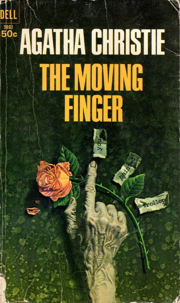 ABOVE: Agatha Christie, The Moving Finger (NY: Dell, 1968), with cover art by William Teason.