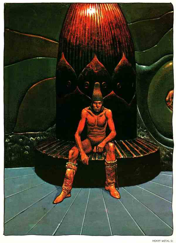 From Heavy Metal volume 1, number 4, here’s the cover, a full-page illustration, and a couple of short stories by Moebius:
