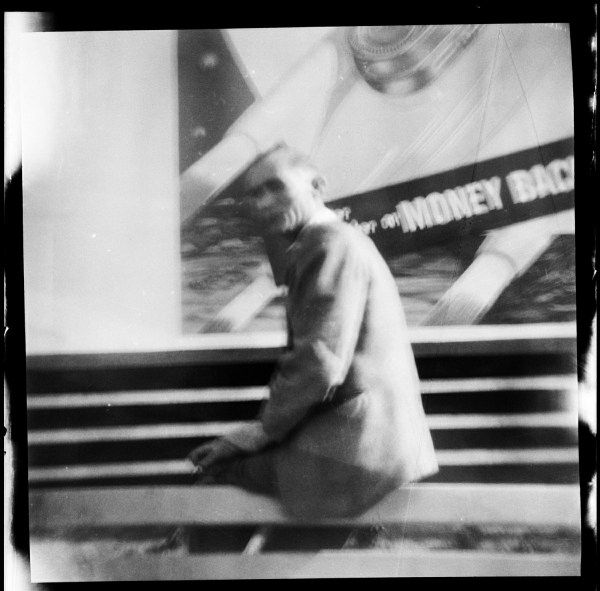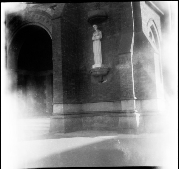 Where were the photographs taken? A racetrack? A racetrack for what? Horses? Dogs? Is the person who stole the camera visible in any of the photographs? Are any of those people still alive? Does the ghostly apparition in short pants in the second photograph have grandkids who are excited to squirm into their costumes and haunt the surrounding neighbourhoods at Halloween this year? What was the attraction of the white stone statue — a monk? a saint? — in the niche on the side of that building? What is that building, anyway? A church? The entrance to the track? What is beyond that picket fence?