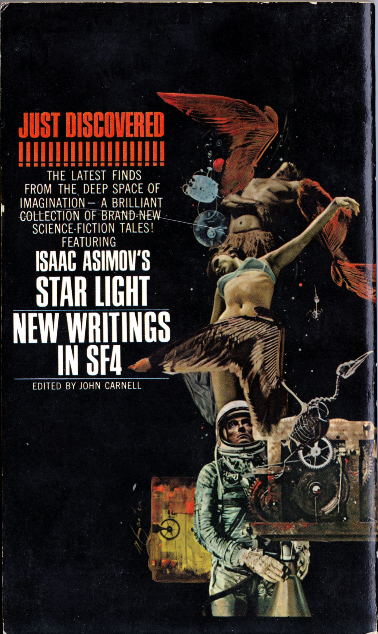At first, I just planned to post a couple of covers by Robert Foster, scanned by me from my personal collection of SF paperbacks, but I have since decided that it might be more interesting to trace one warm line up through the chain of influence that led to Foster’s arresting illustrations for the front and back covers of Michael Moorcock’s Behold the Man. So here goes: