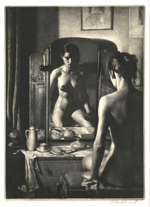 ABOVE: Gerald Leslie Brockhurst, Adolescence (1932), etching, 26.5 x 37 cm. Collection of British Council, UK. Via TRANSISTORADIO.