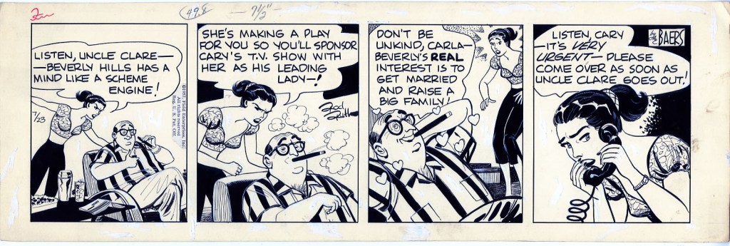 Here are two more strips by Rod Ruth, from our slowly expanding collection of original art; the first is from 2-20-58, and the second, from 3-12-58: