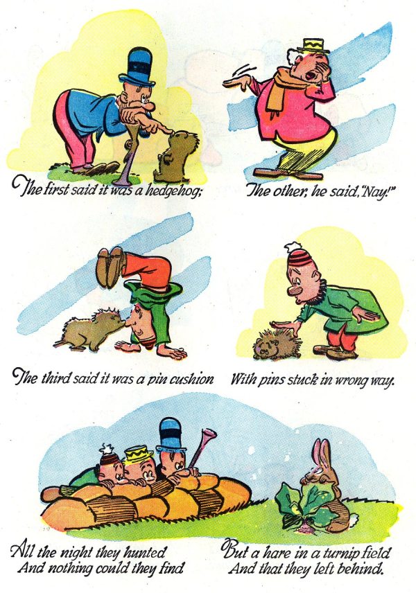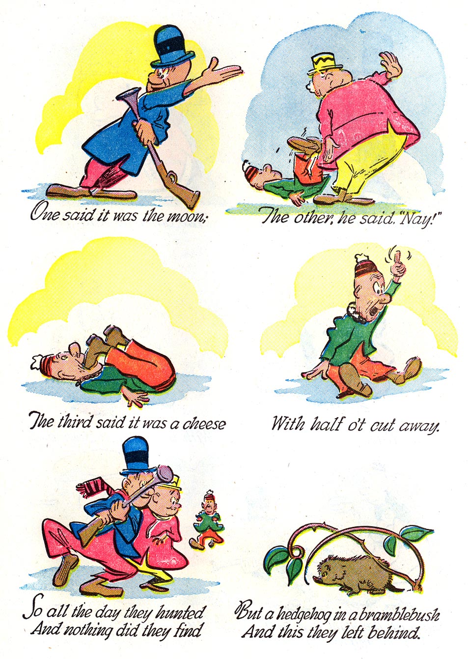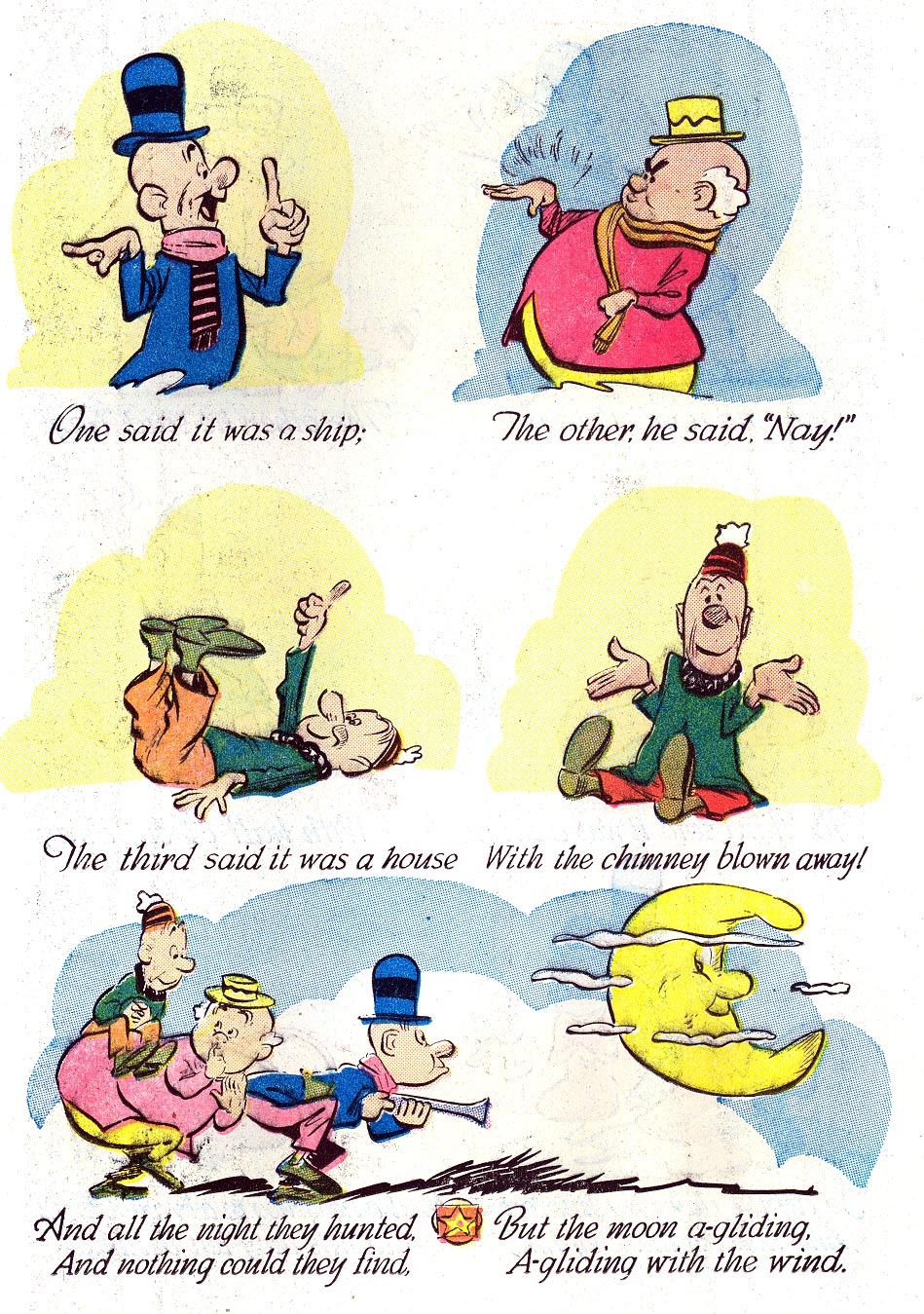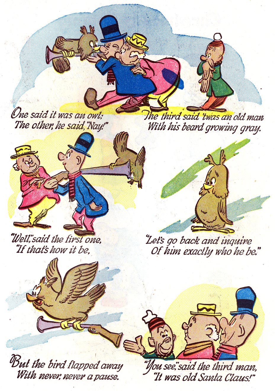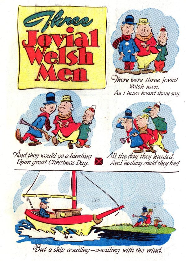 From Four Color: Christmas with Mother Goose #201 (1948), here’s “Three Jovial Welsh Men,” a traditional song adapted for comics with wit and energy by Walt Kelly: