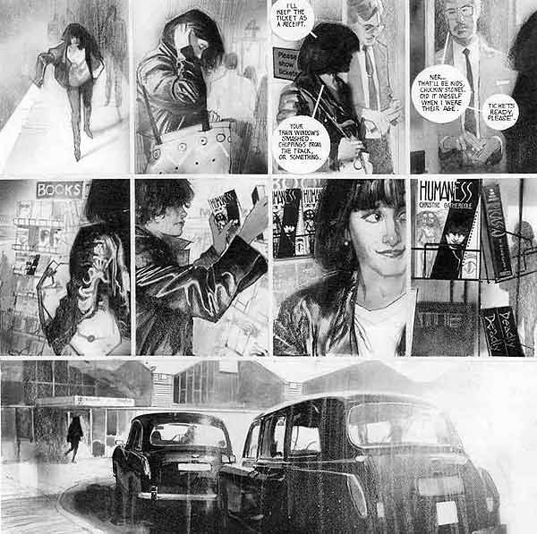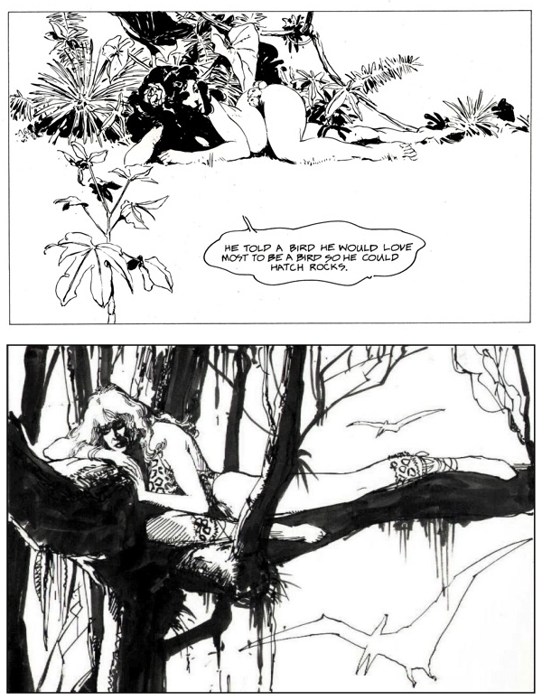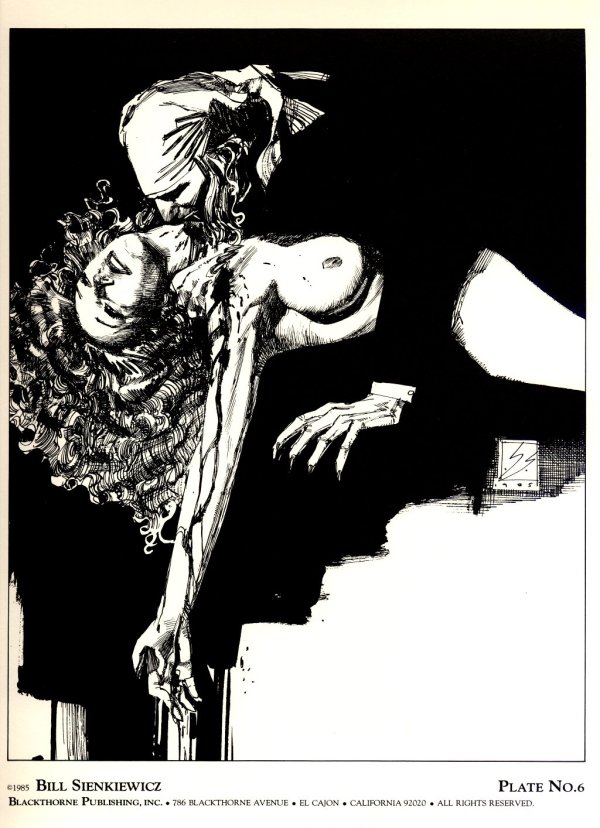 From 1988, a page from Stray Toasters, to compare with the illustration by Robert Heindel that I linked to earlier: