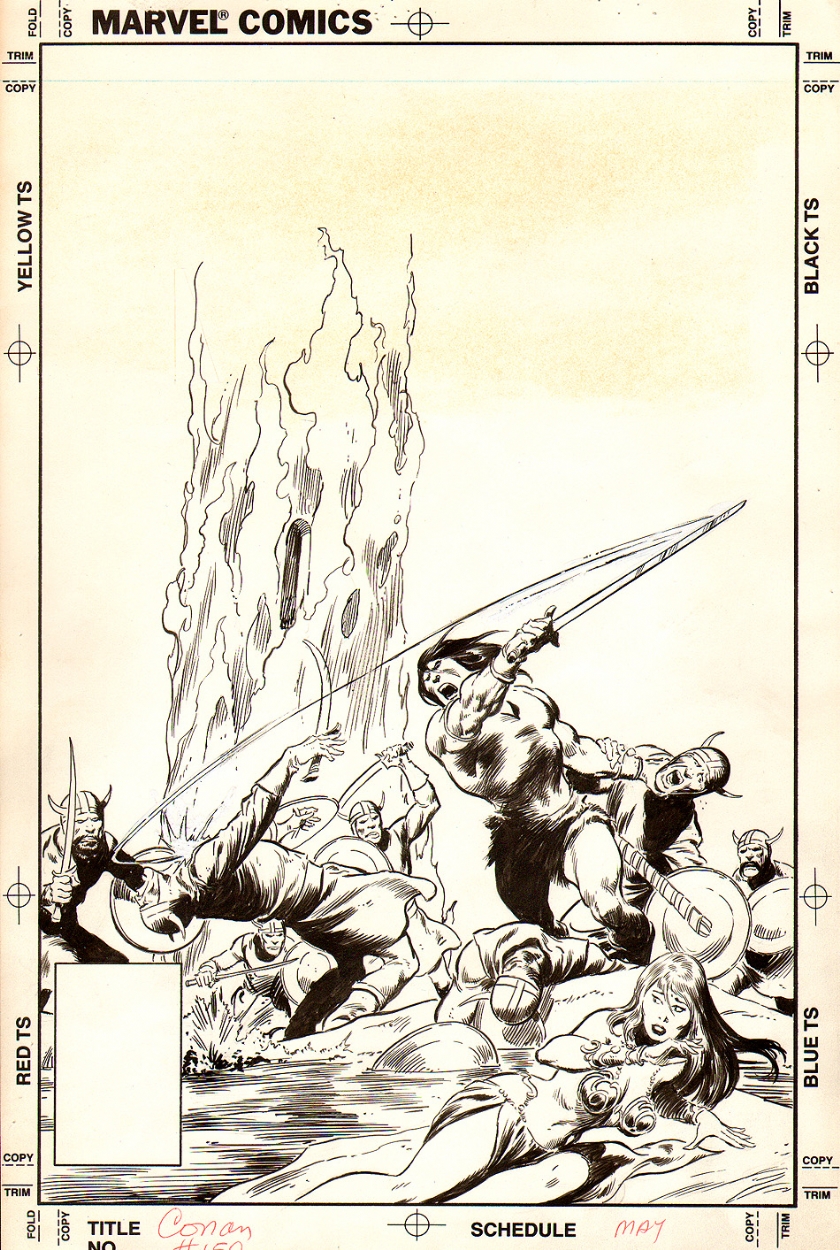 The only issues of Conan that I have ever searched through dusty back-issue boxes to find and add to my collection were issues in which Barry Smith inked Barry Smith, John Buscema inked John Buscema or Gil Kane inked Gil Kane. The unpublished cover of Conan the Barbarian #150 looks like pure John Buscema to me.