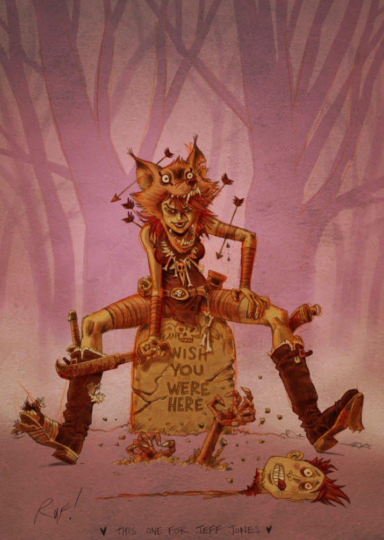 I wonder… do you suppose it is possible that Bill Sienkiewicz based the composition of the painting he donated to Better Things on the following illustration by Jones himself: