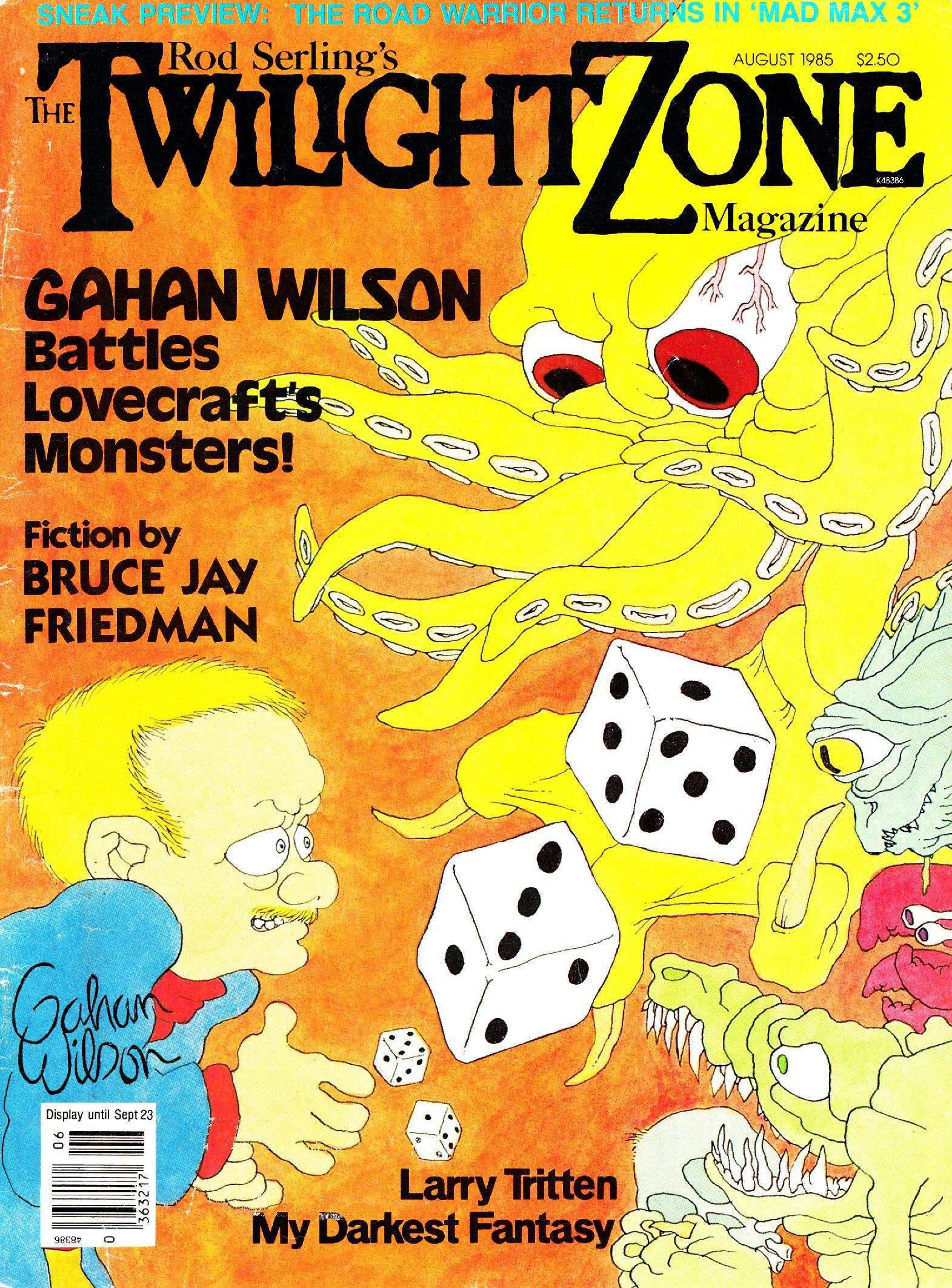 From Rod Serling’s The Twilight Zone, volume 5, number 3 (August 1985), here’s the cover with art by Gahan Wilson along with an amusing fumetti-style collaboration between Gahan Wilson and photographer Arthur Paxton; in the original printing, the photographs ran, in sequence, with each on a separate page:
