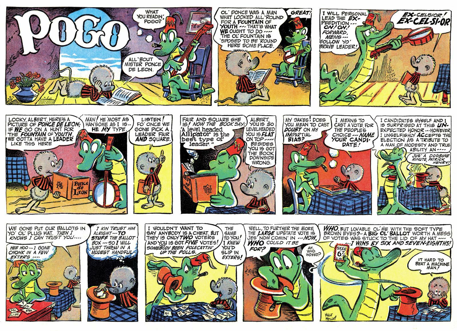 Look Here, Read: Four consecutive POGO Sundays (April 16th to May 7th, 1950) by Walt Kelly