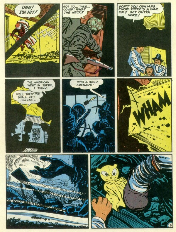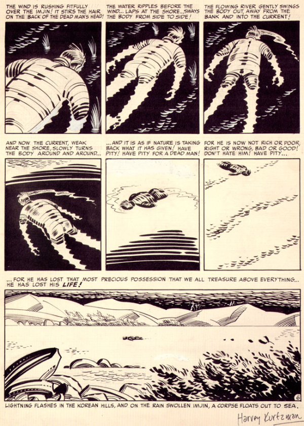 From a 1993 reprint of Two-Fisted Tales #22 (EC, 1951), here’s “Dying City!” with script and layouts by Harvey Kurtzman, pencils by Alex Toth, and inks by Kurtzman: