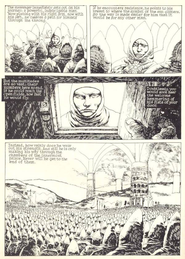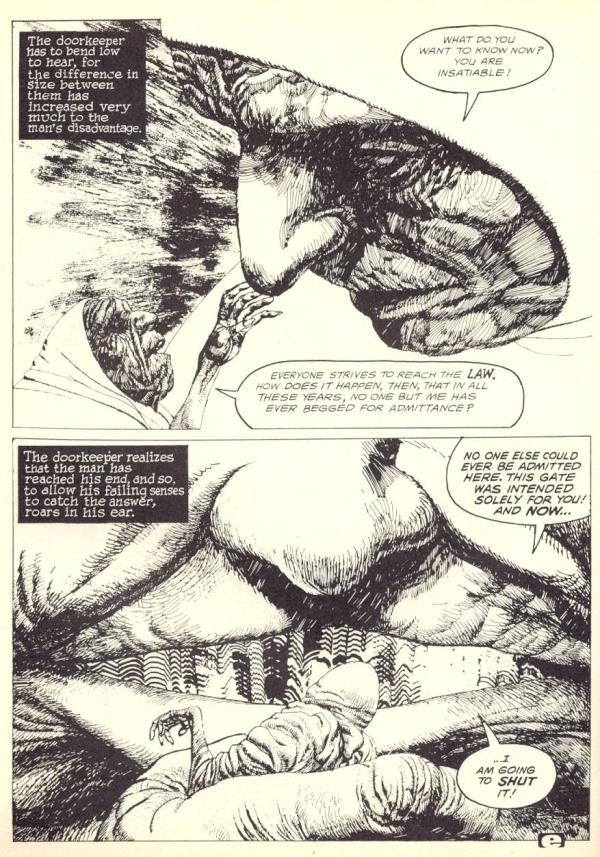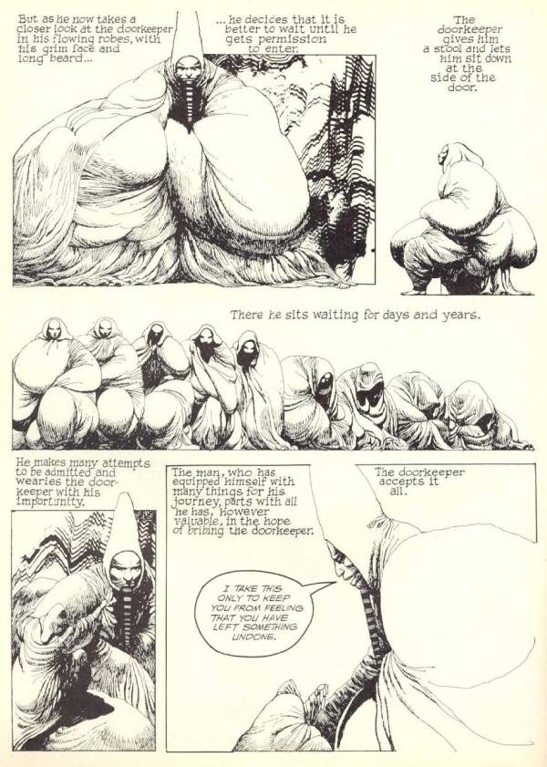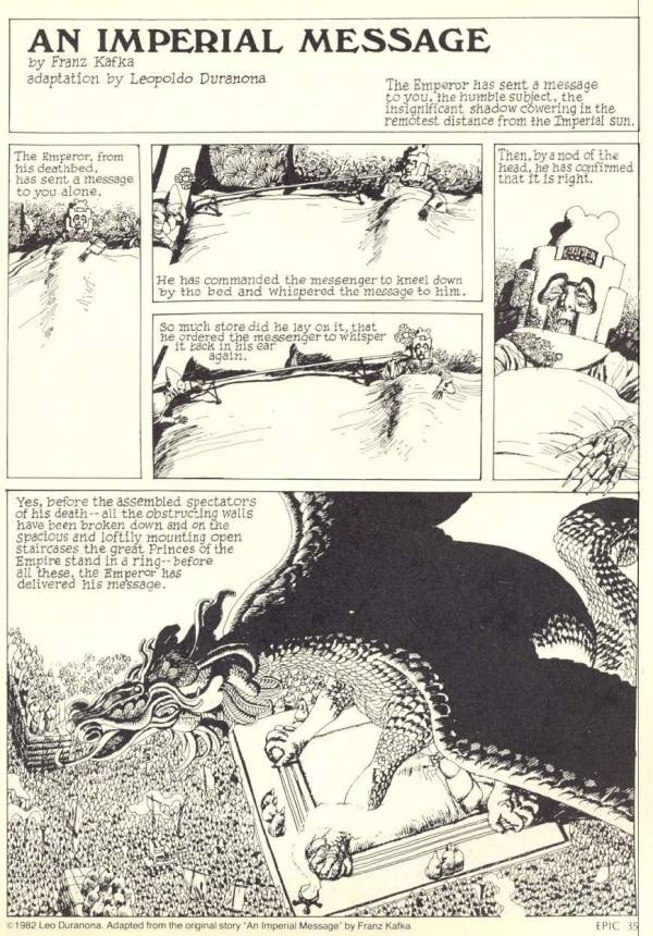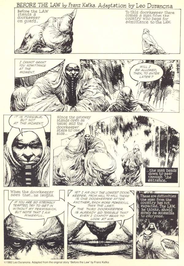 To view all of the stories with art (or art and script) by Duranona that I’ve posted thus far (including three more Kafka adaptations), click here.