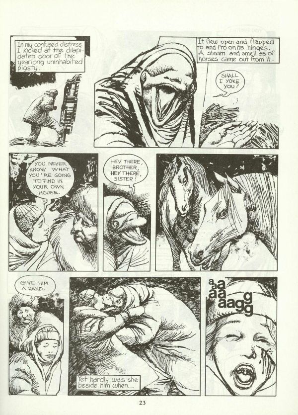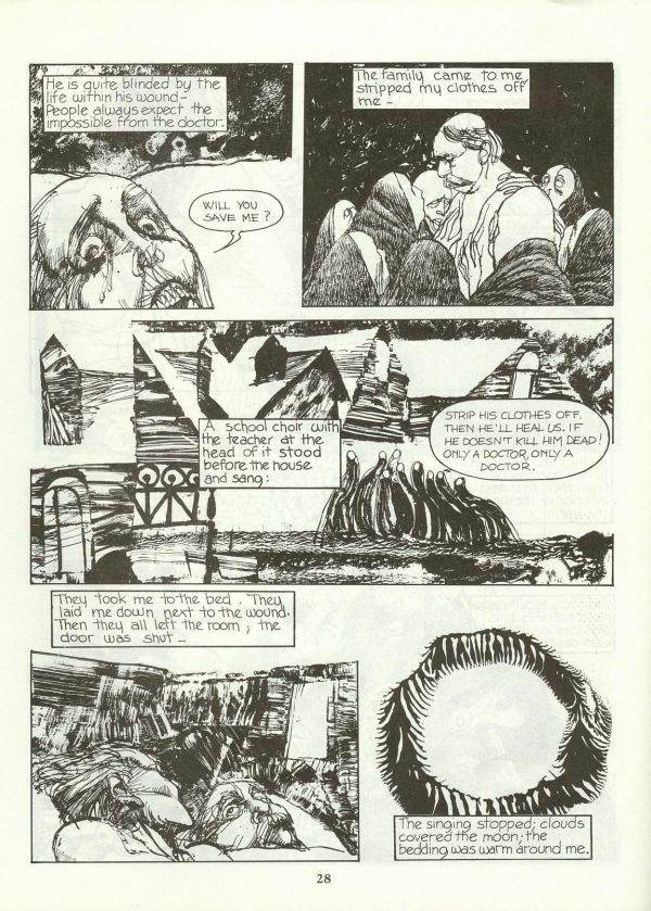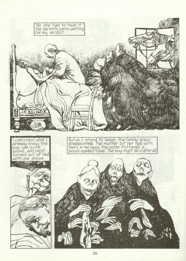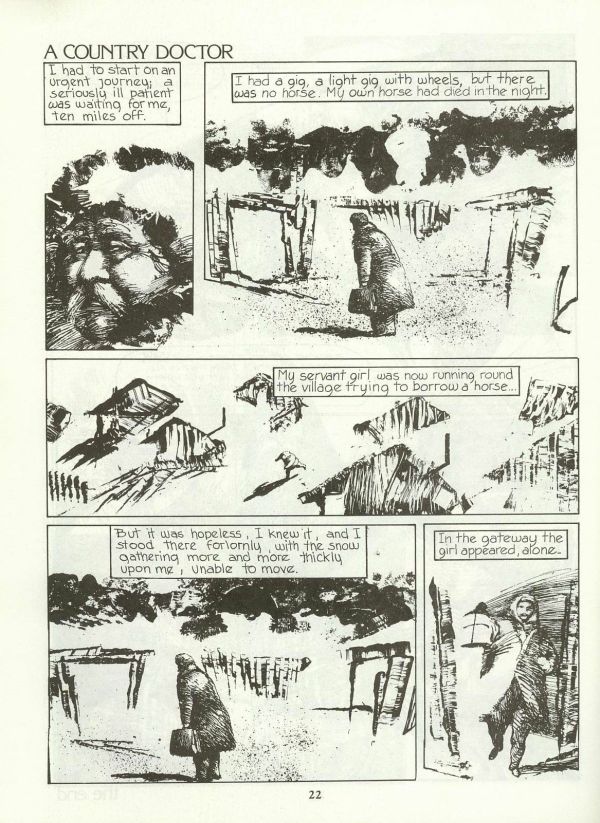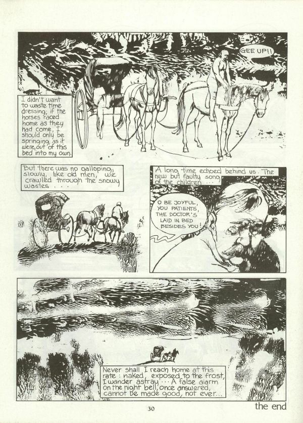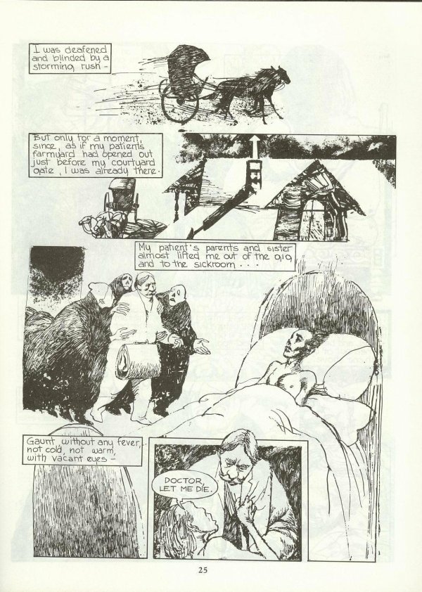 From the out-of-print collection Kafka: The Execution by Leopoldo Duranona (Fantagraphics Books, 1989), here’s Duranona’s adaptation of Kafka’s “A Country Doctor“: