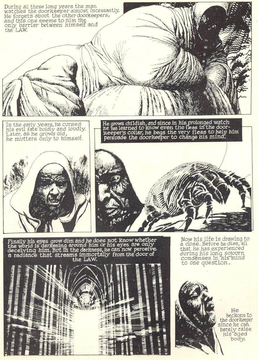 To view all of the stories with art (or art and script) by Duranona that I’ve posted thus far (including three more Kafka adaptations), click here.