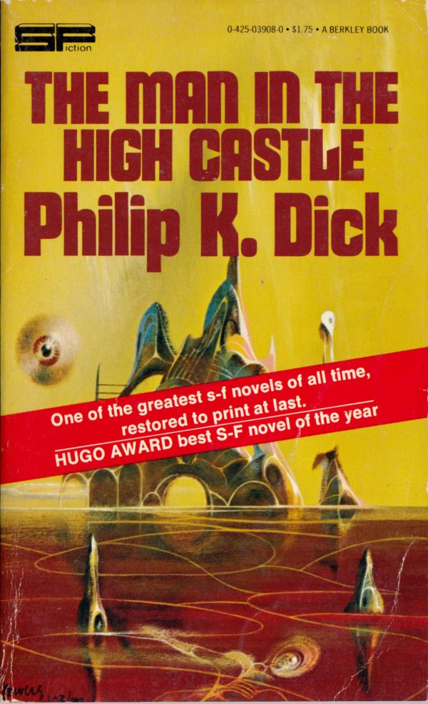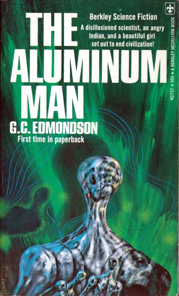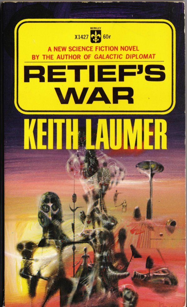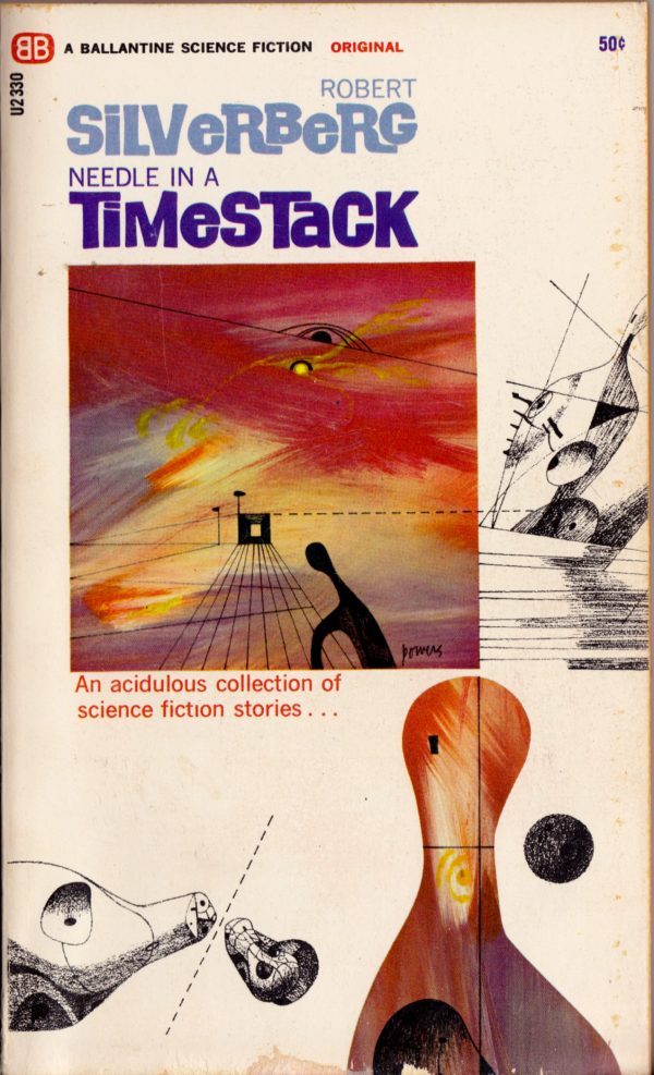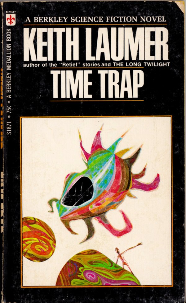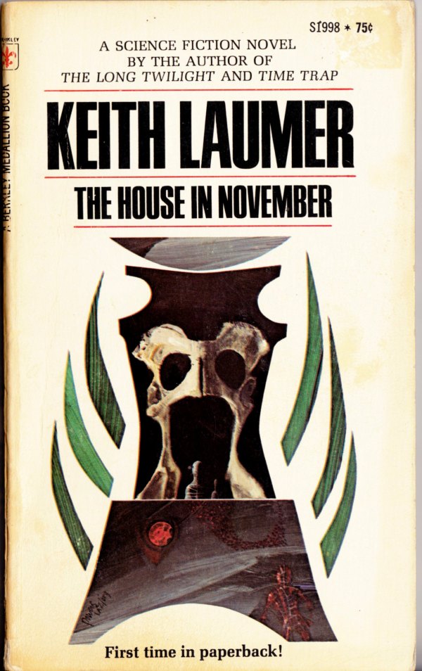 Powers didn’t produce many covers with collage elements that are as obvious as the mechanical building blocks of his art for Lester del Rey’s Mortals and Monsters, but he makes it work, splendidly, as usual. The dotted line and black dot on the left-hand side give the collage a sardonic twist: all that complex machinery, and the result is what? a pop gun?