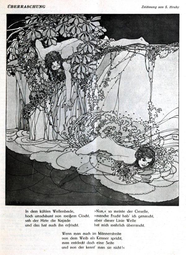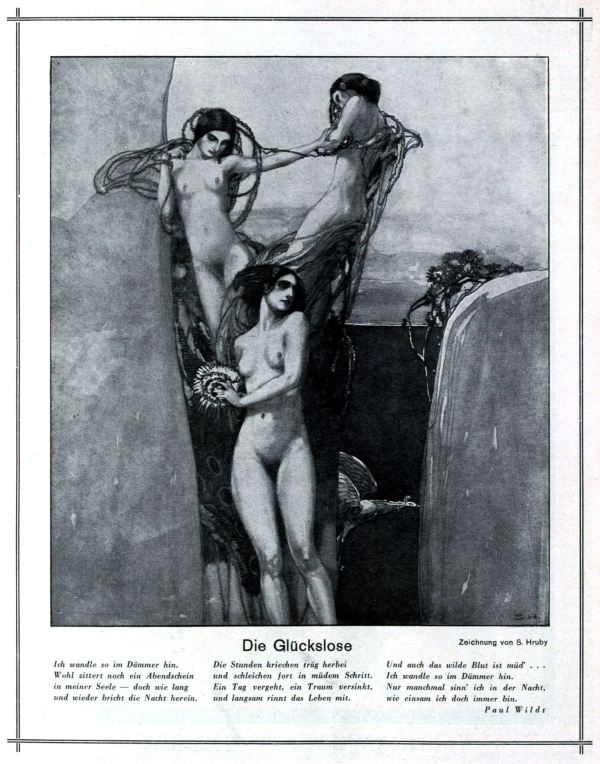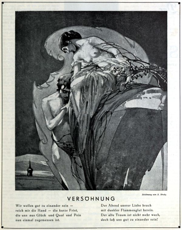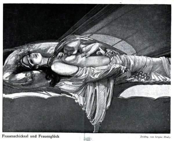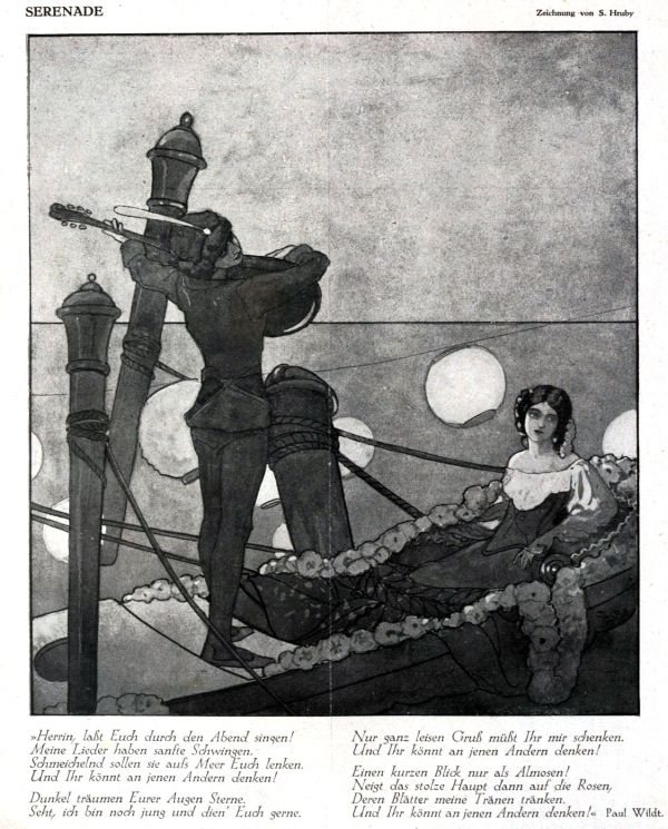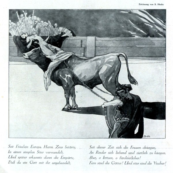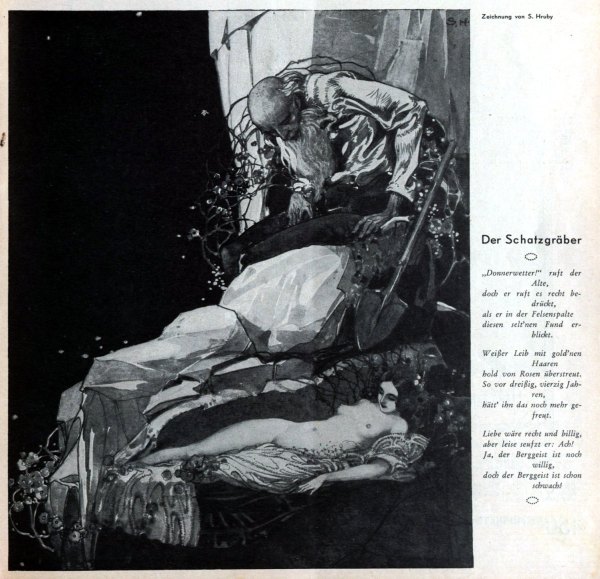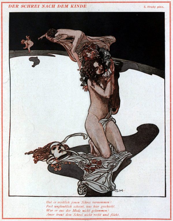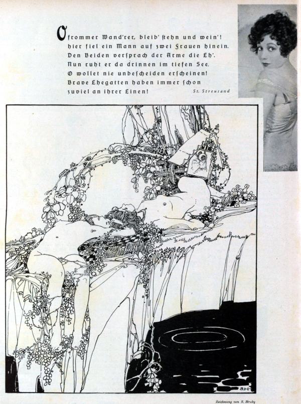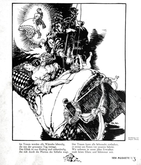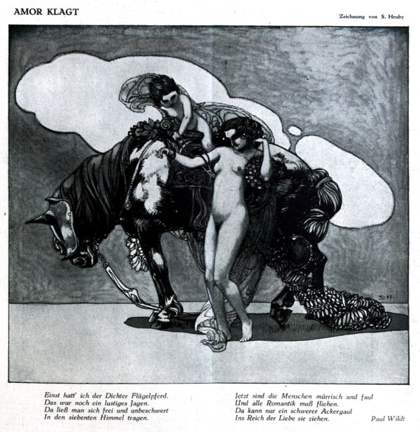 According to the RCN webstats, the various posts here of illustrations by Sergius Hruby have been sorta-kinda popular, so in the interest of sucking up to the faceless semi-horde, here’s yet another (and probably the last) more or less random display of Hruby, selected, processed, and posted by me from the Austrian humour/men’s magazine, Die Muskete, via the online archive of the Austrian National Library: