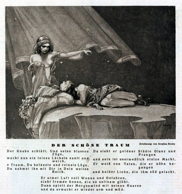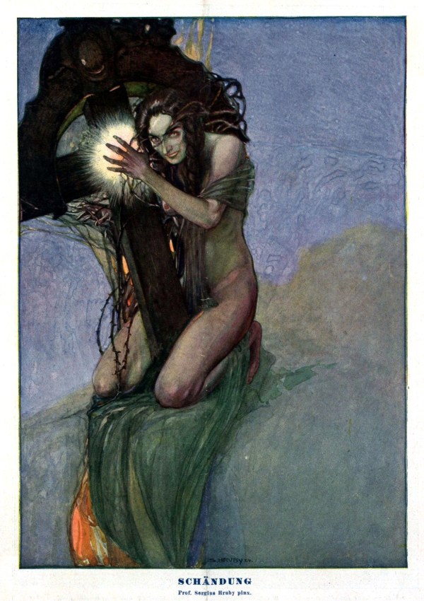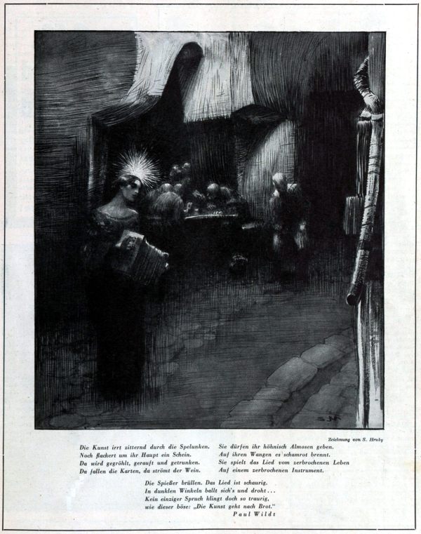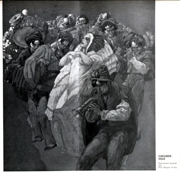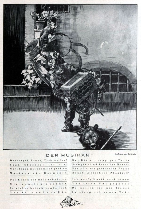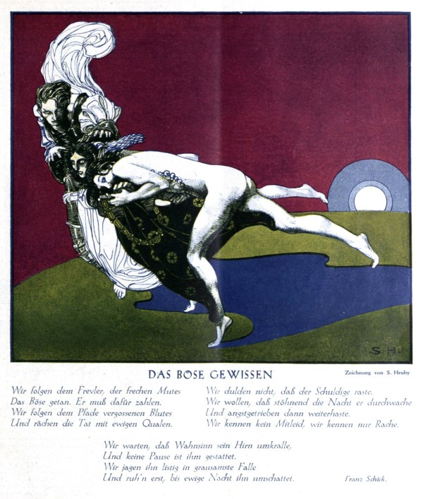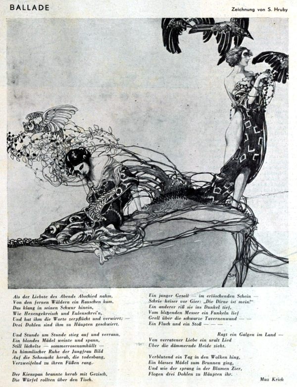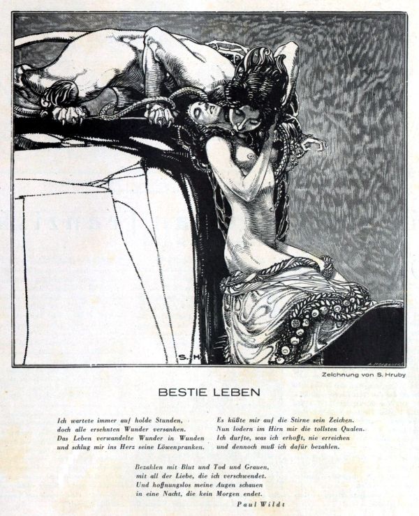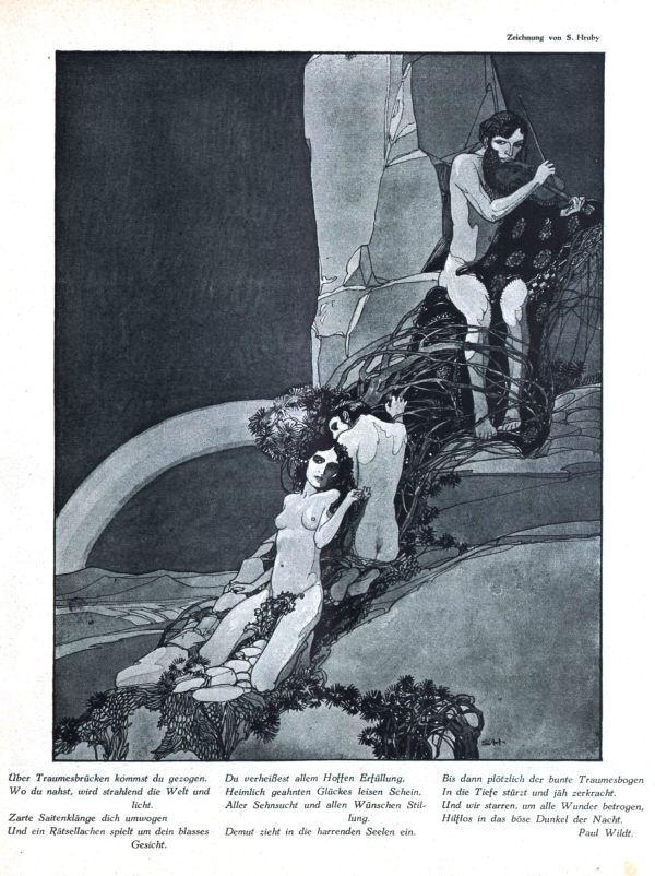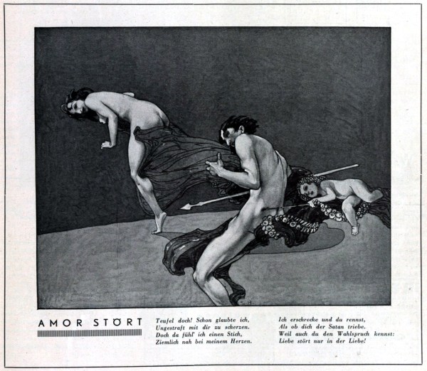 According to the RCN webstats, the various posts here of illustrations by Sergius Hruby have been sorta-kinda popular, so in the interest of sucking up to the faceless semi-horde, here’s yet another (and probably the last) more or less random display of Hruby, selected, processed, and posted by me from the Austrian humour/men’s magazine, Die Muskete, via the online archive of the Austrian National Library: