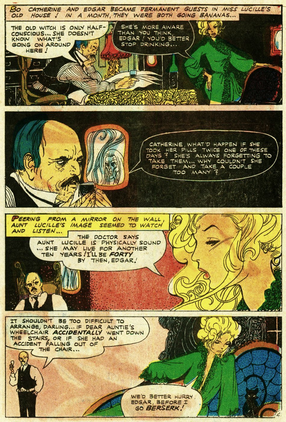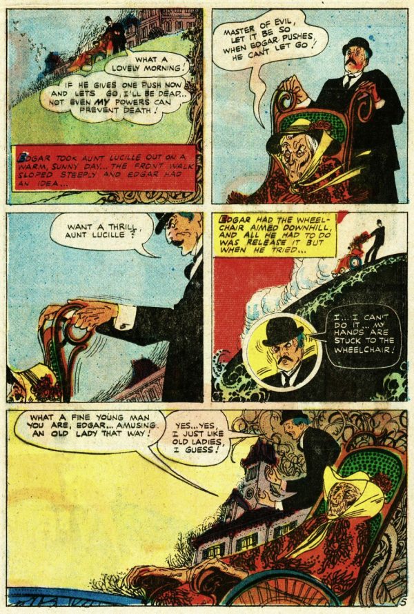And next, from Midnight Tales volume 3, number 10 (December 1974), here’s “The Strange Mr. Milque,” with script by Nick Cuti and art by Tom Sutton: