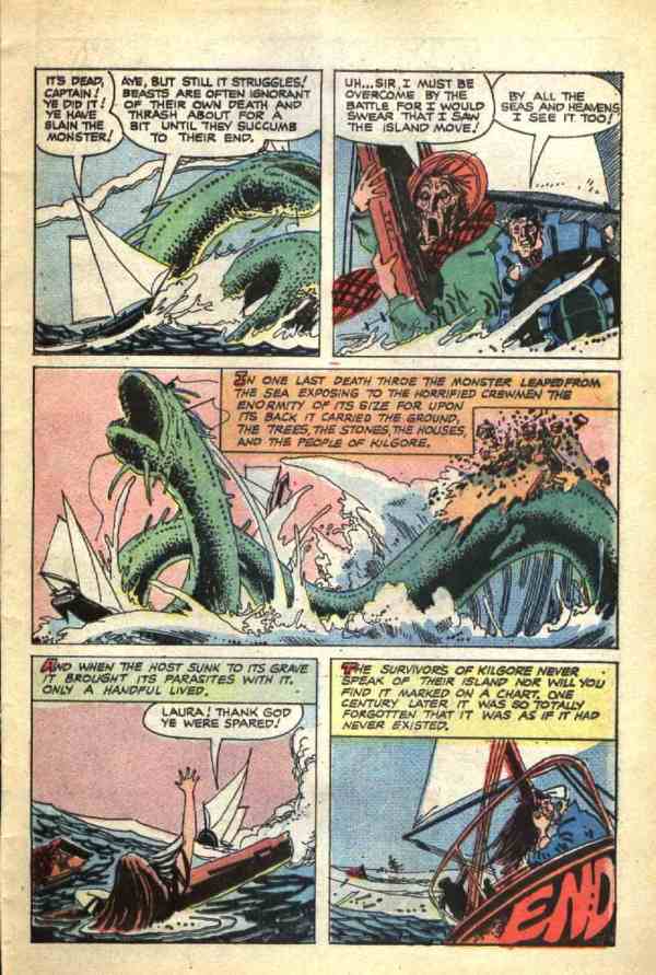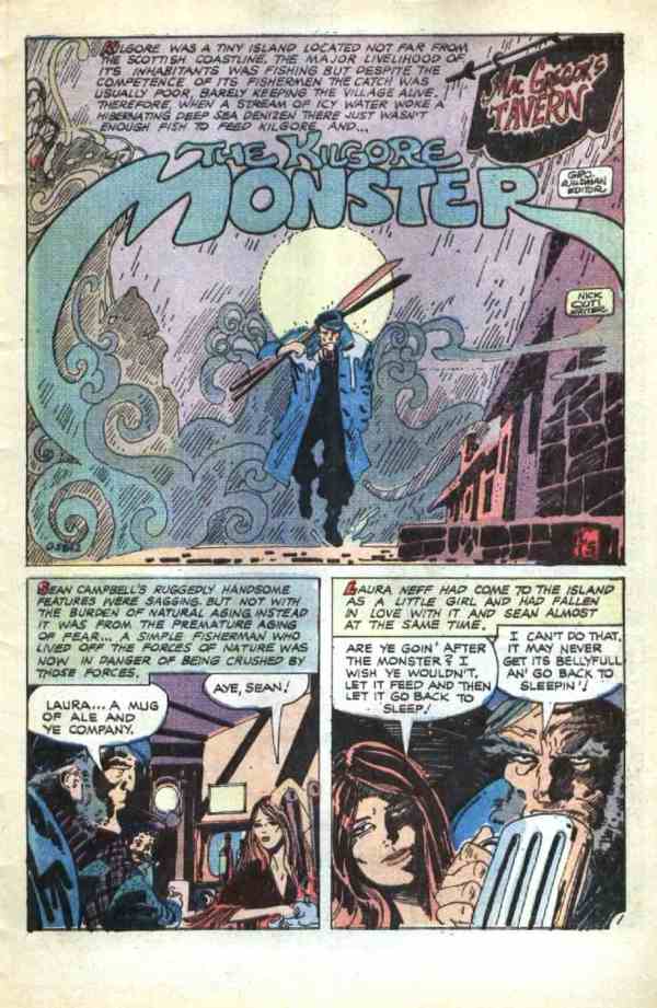 And next, from Midnight Tales volume 3, number 8 (July 1974), here’s “The Kilgore Monster,” with script by Nick Cuti and art by Tom Sutton: