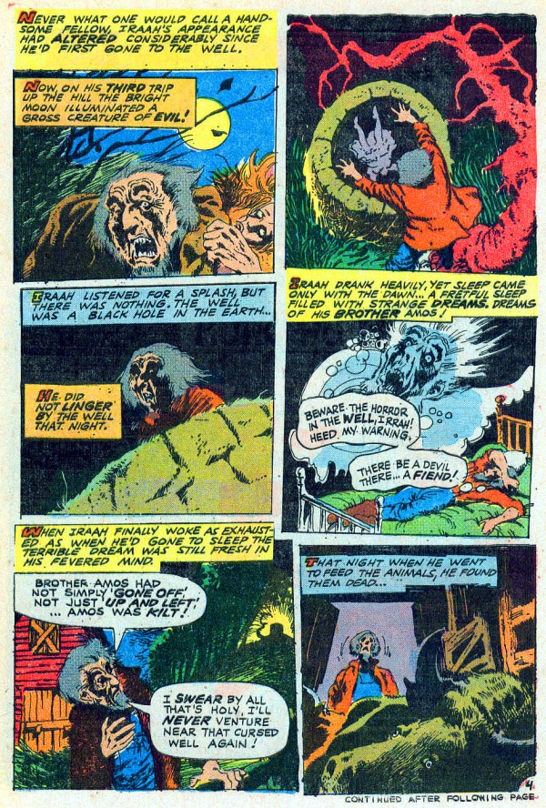 From Creepy Things #1 (July 1975), here’s “The Well,” with script and art by Tom Sutton; the cover is by Sutton, too:
